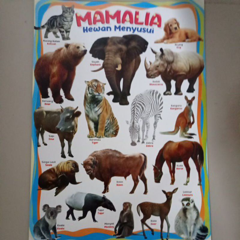 Poster Edukasi Anak Mengenal Binatang Menyusui/Mamalia