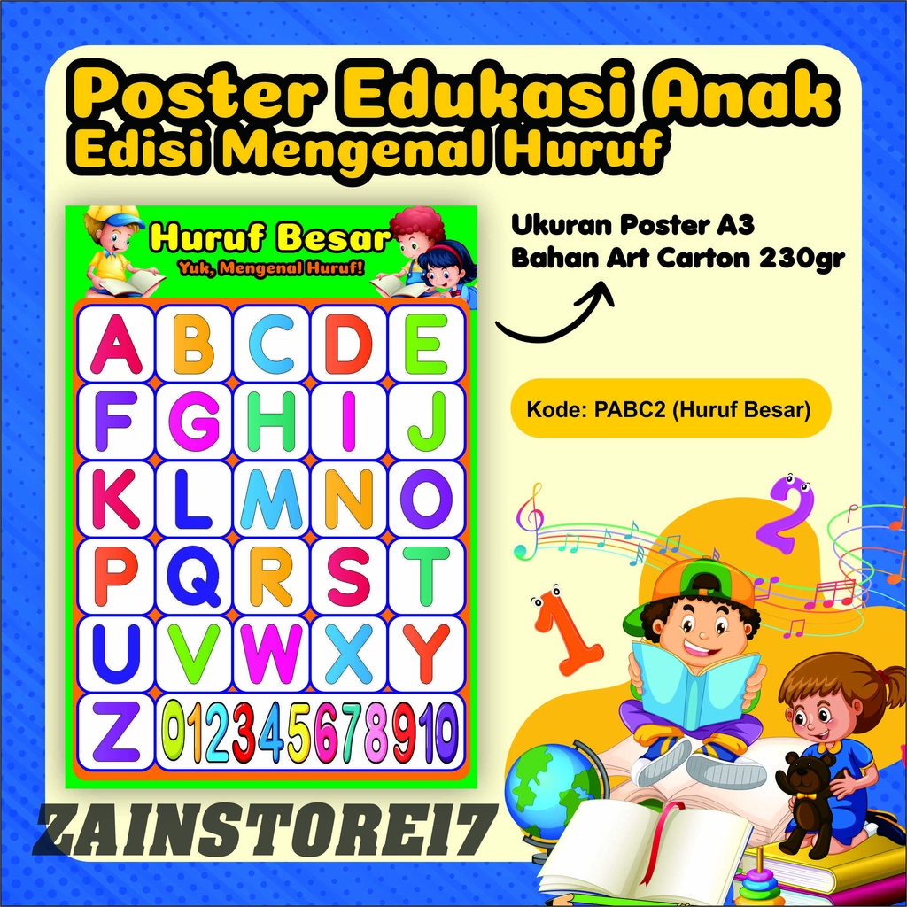 Poster Edukasi Anak - Mengenal Huruf / Poster Alfabet / Alphabet / Poster Huruf Belajar Baca Anak