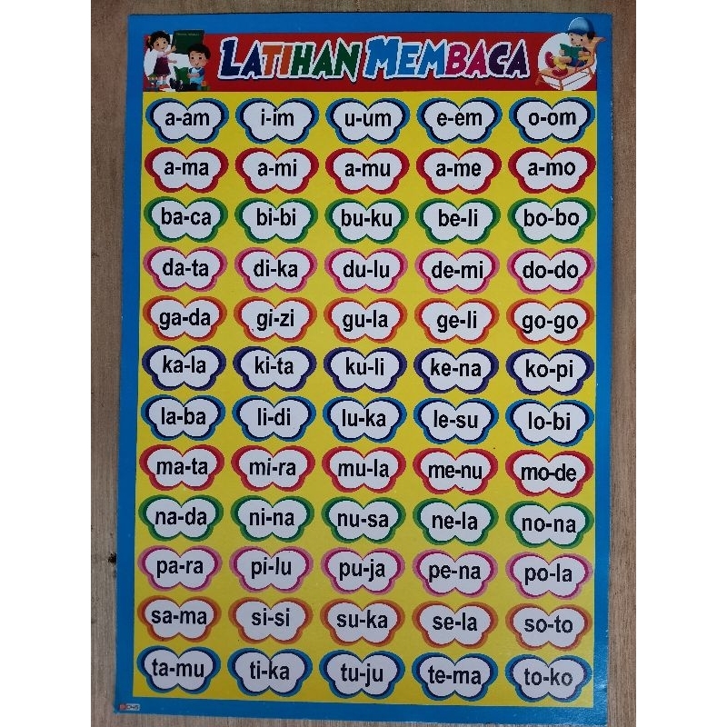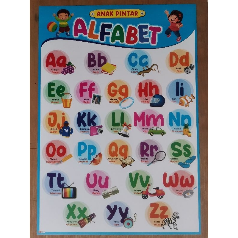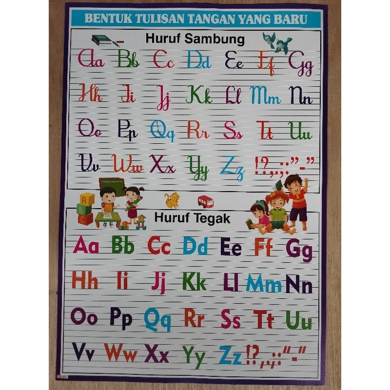 Poster Edukasi Anak / Mengenal Hurup / Belajar Membaca / Latihan Membaca / Hurup Sambung / Hurup Tegak / DLL