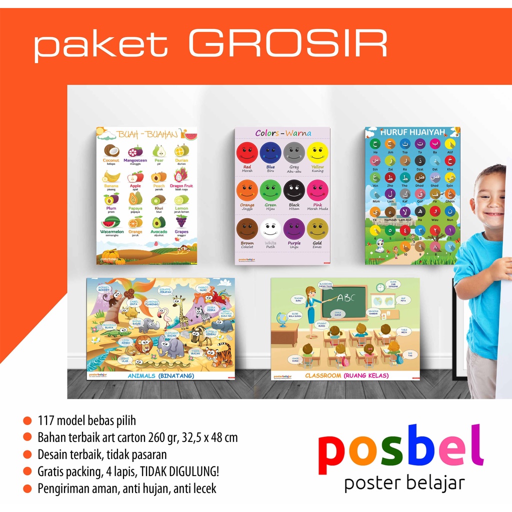 Poster Edukasi Anak POSBEL GROSIR CAMPURAN untuk Belajar Pendidikan Usia PAUD TK SD Mainan