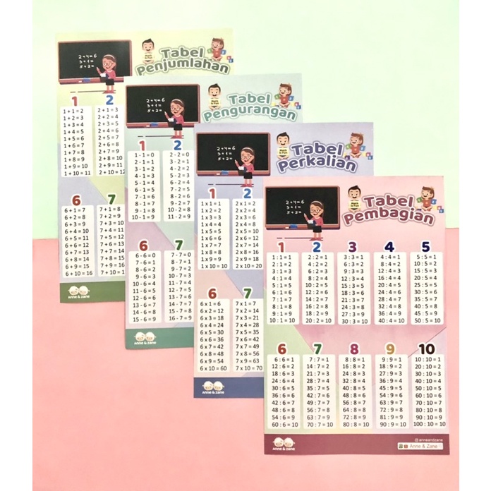 Poster Edukasi Matematika Anak isi 4 Penjumlahan Pengurangan Perkalian Pembagian - Poster Berhitung