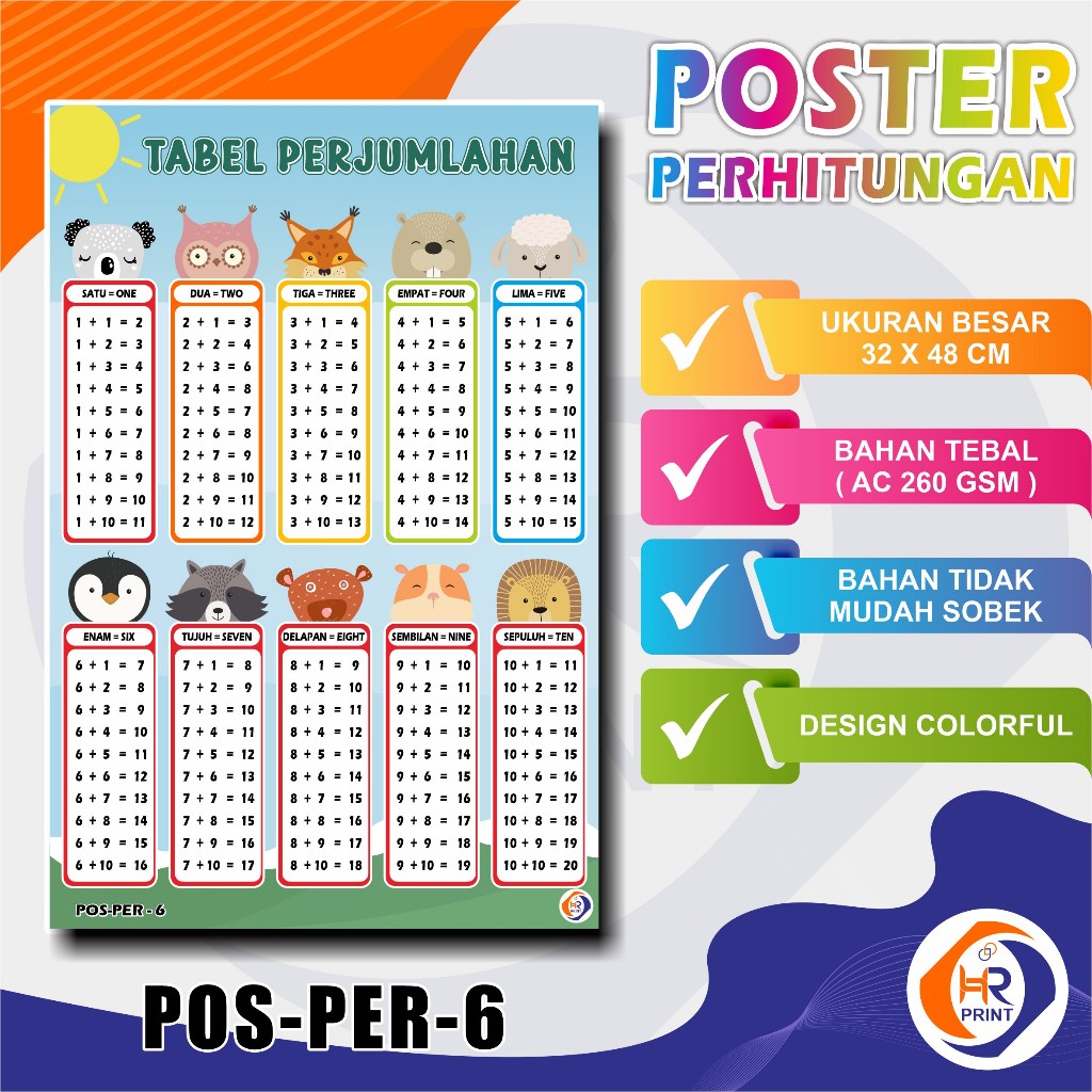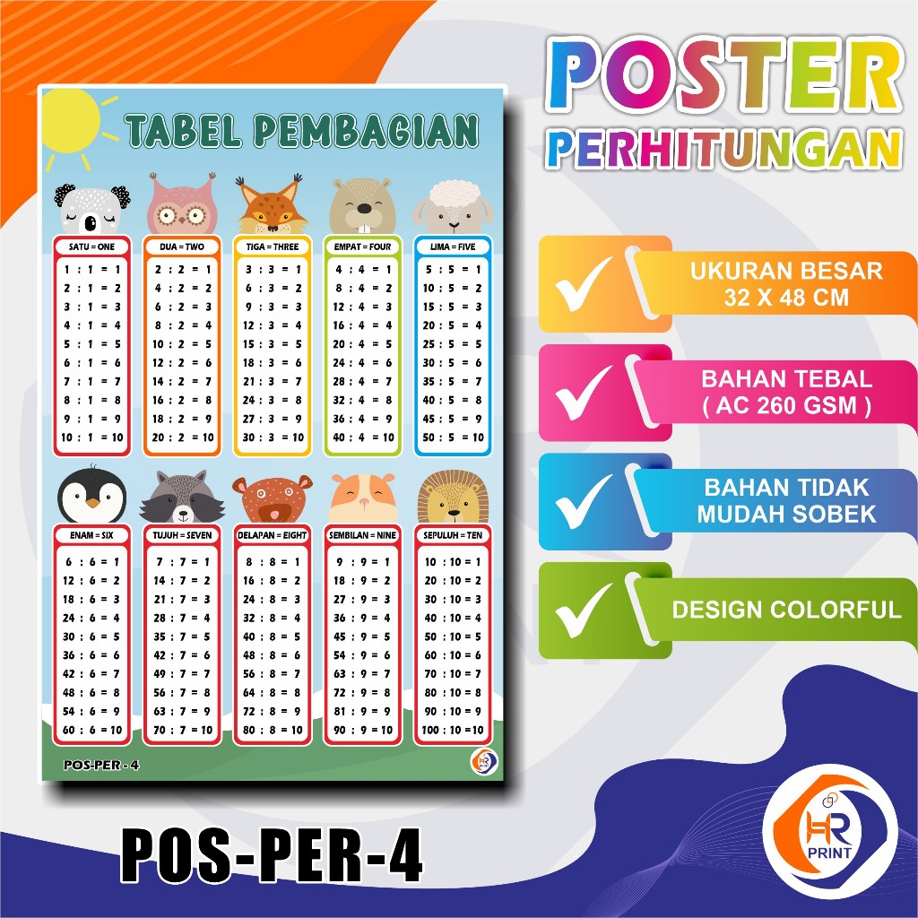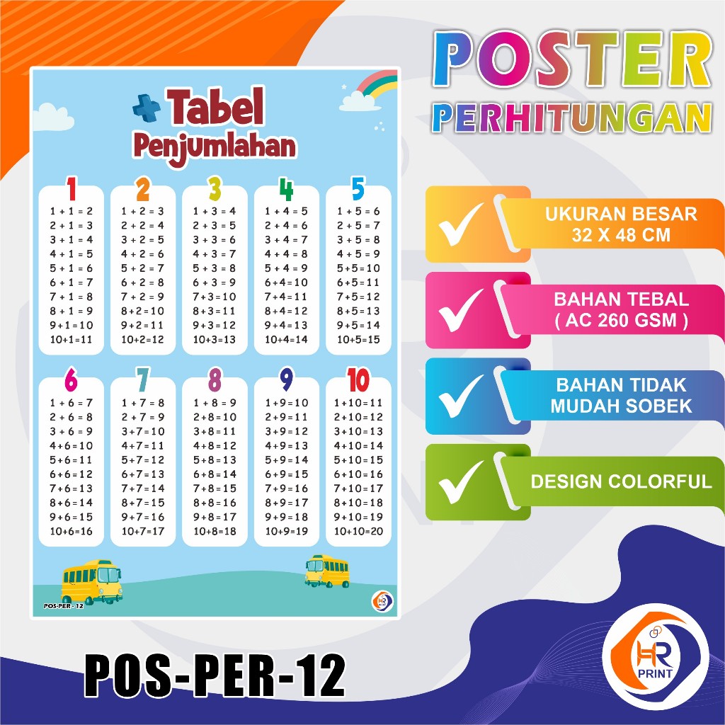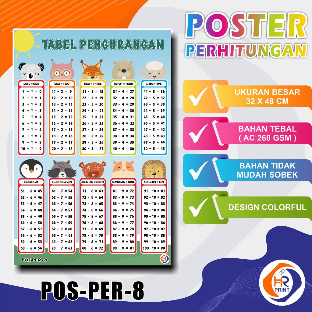 Poster Edukasi Anak - Poster Perhitungan / Poster Angka / Poster Perkalian / Poster Pengurangan / Poster Pembagian / Poster Perjumlahan