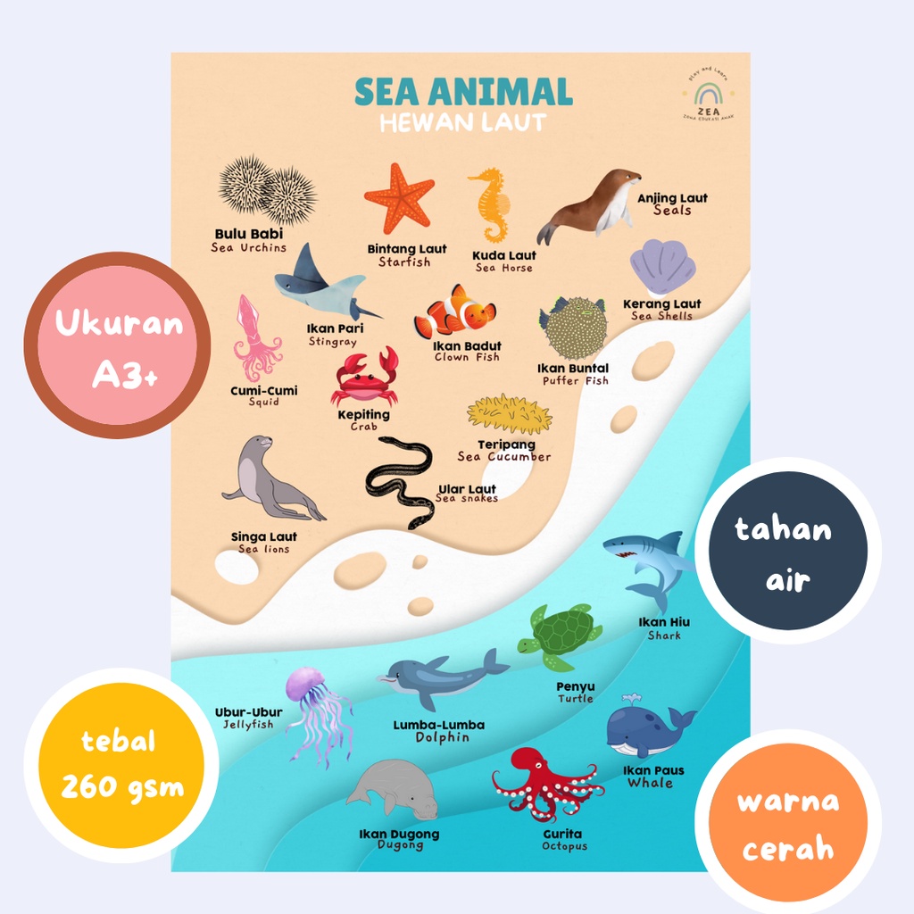 Poster Edukasi Anak Seri Hewan/Animal - Poster Belajar Hewan Anak PAUD TK