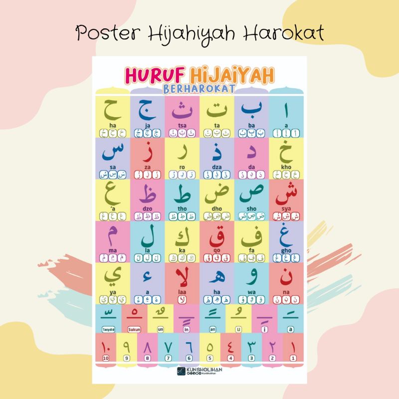 Poster Edukasi Hijahiyah dan Alfabet Bahasa Arab Belajar Iqro Al-Qur'an