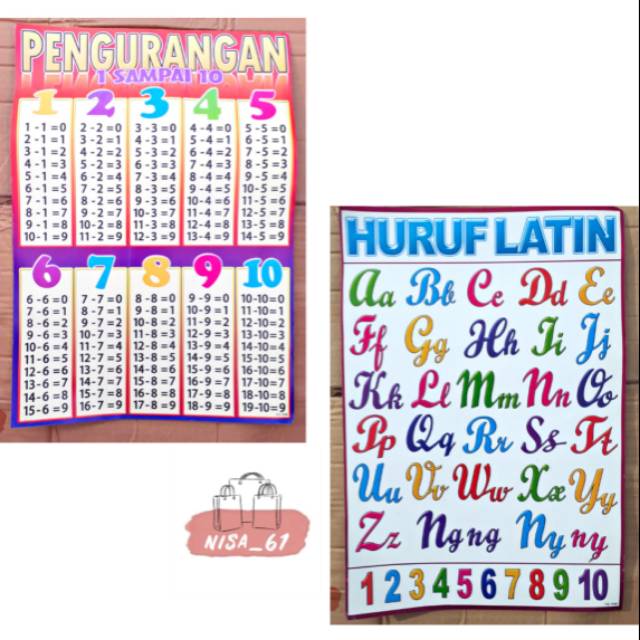 Poster Edukasi Huruf Abjad Angka Pengurangan