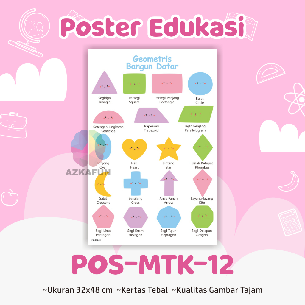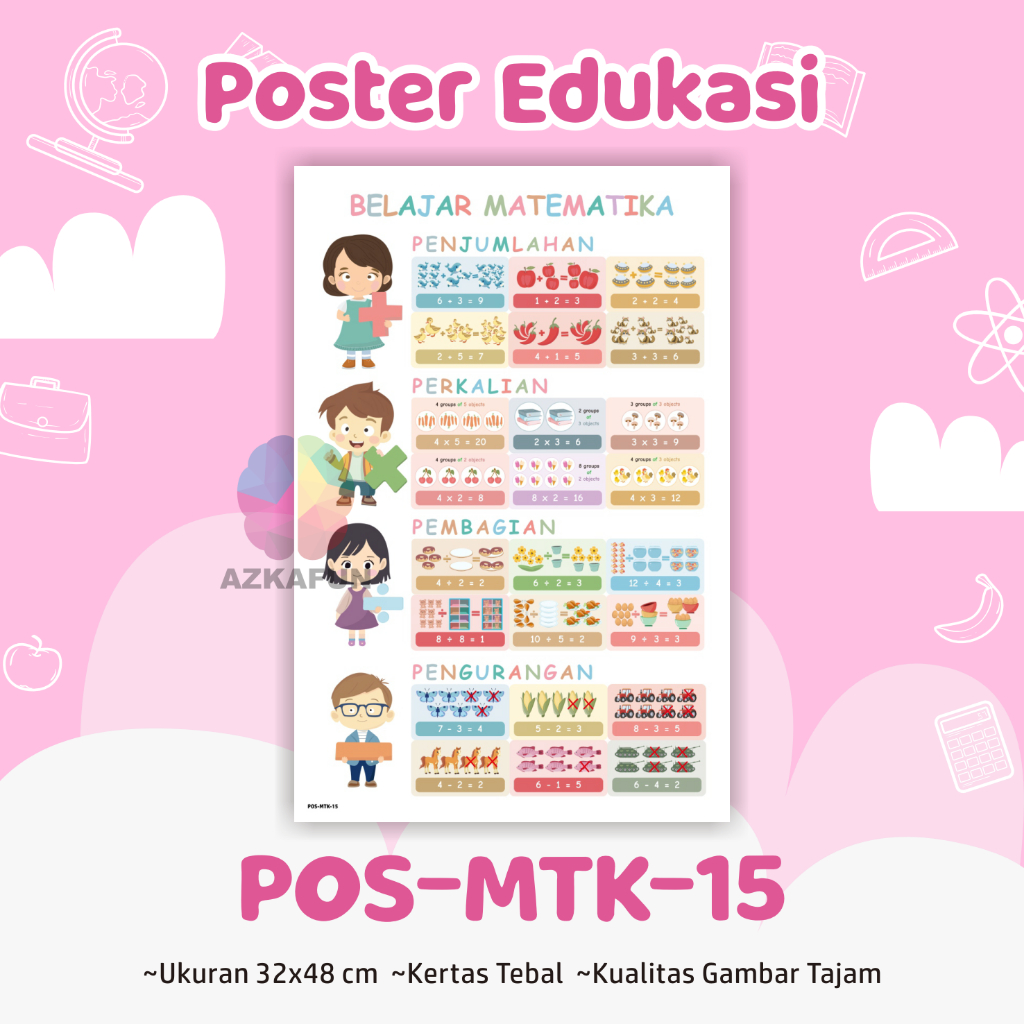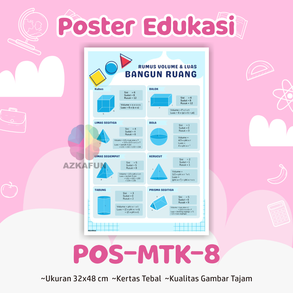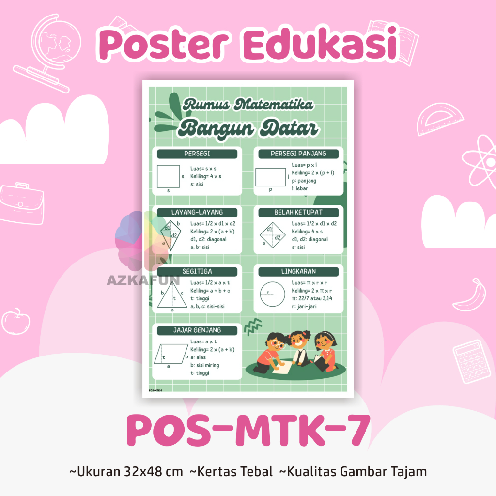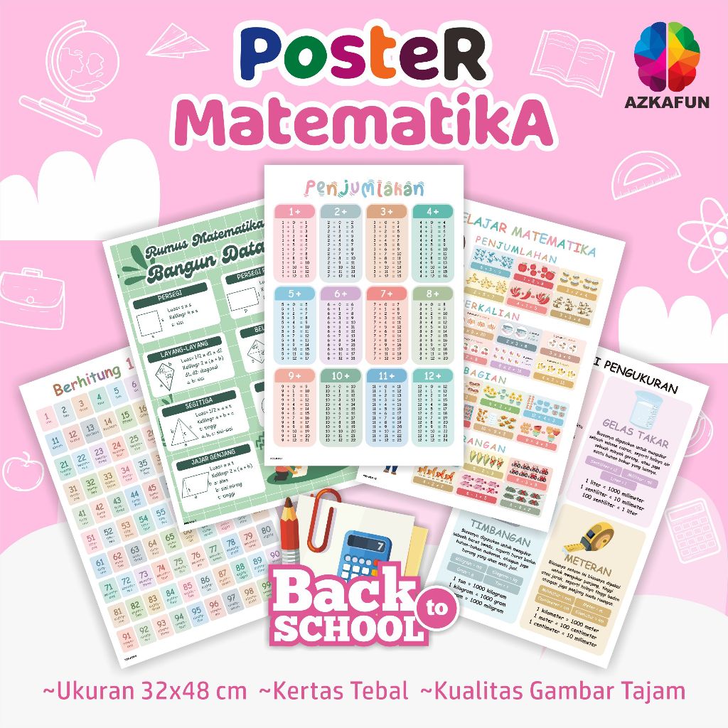 Poster Edukasi MATEMATIKA - Poster penjumlahan, perkalian, rumus, bangun datar