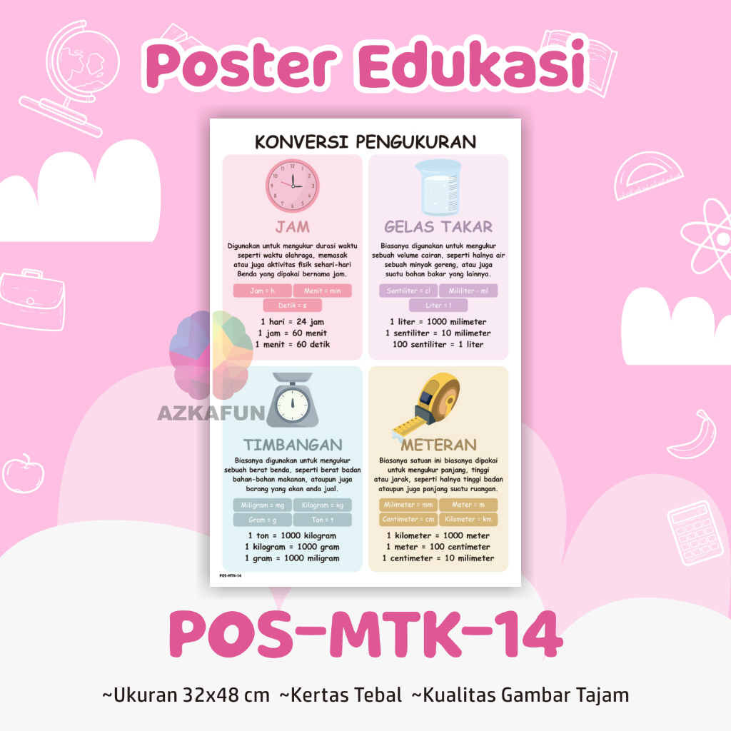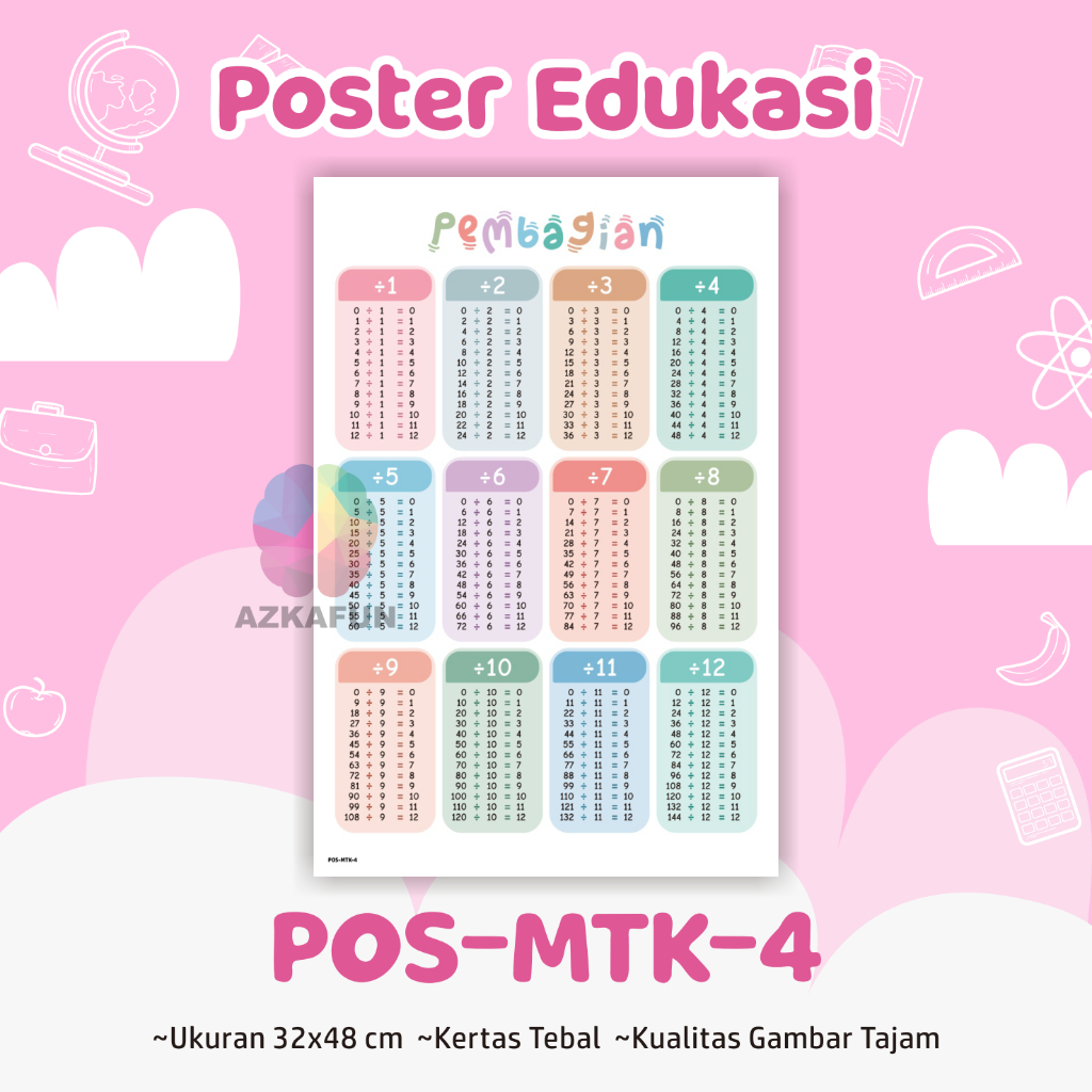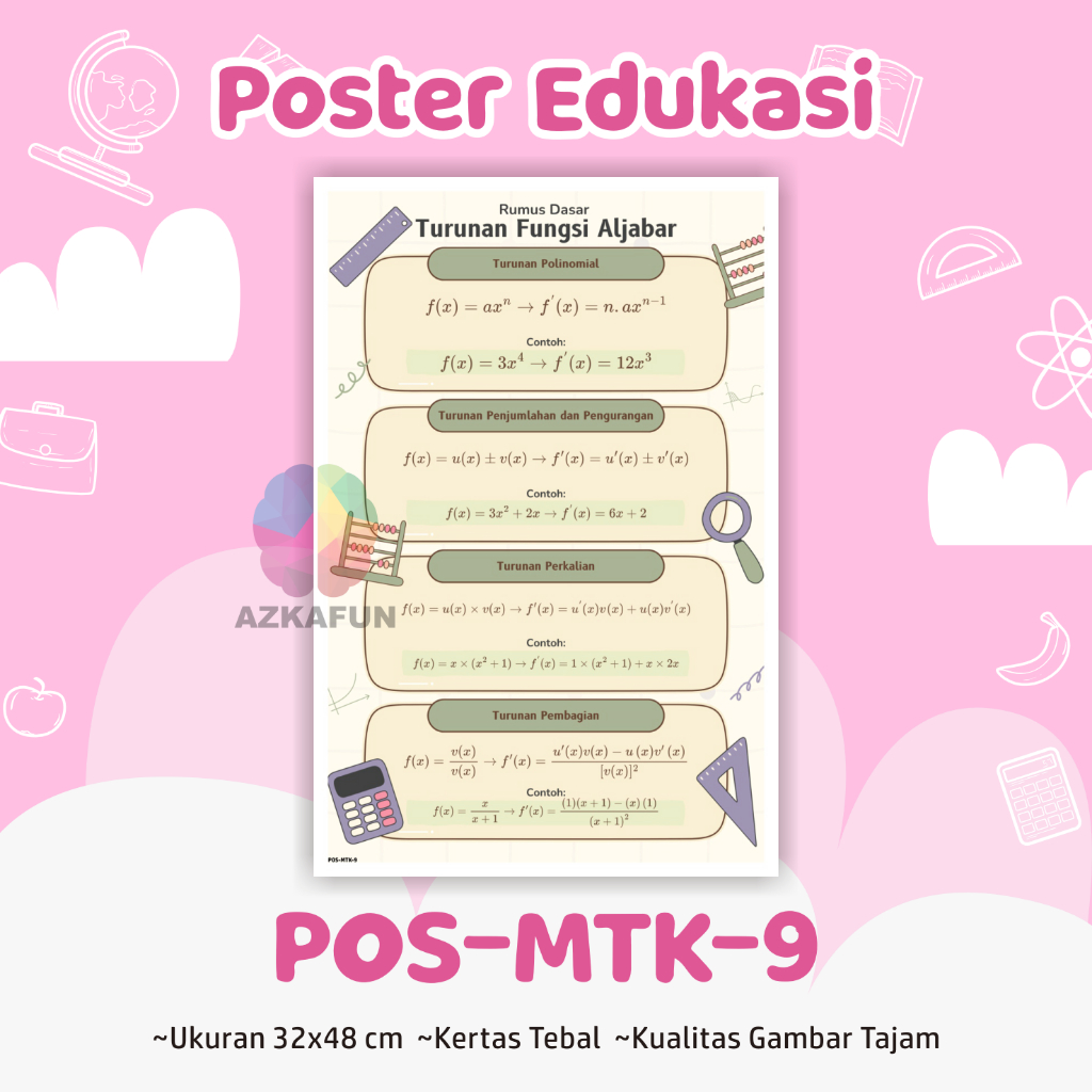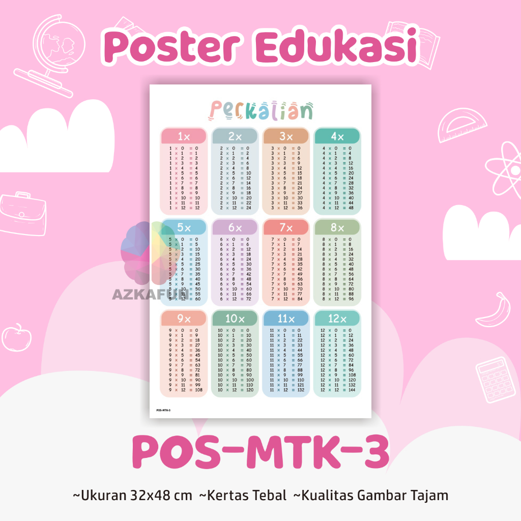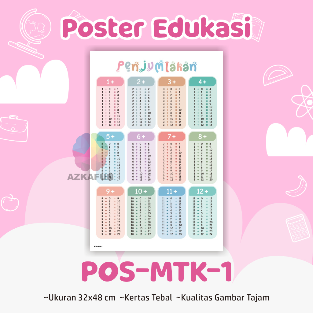Poster Edukasi MATEMATIKA - Poster penjumlahan, perkalian, rumus, bangun datar