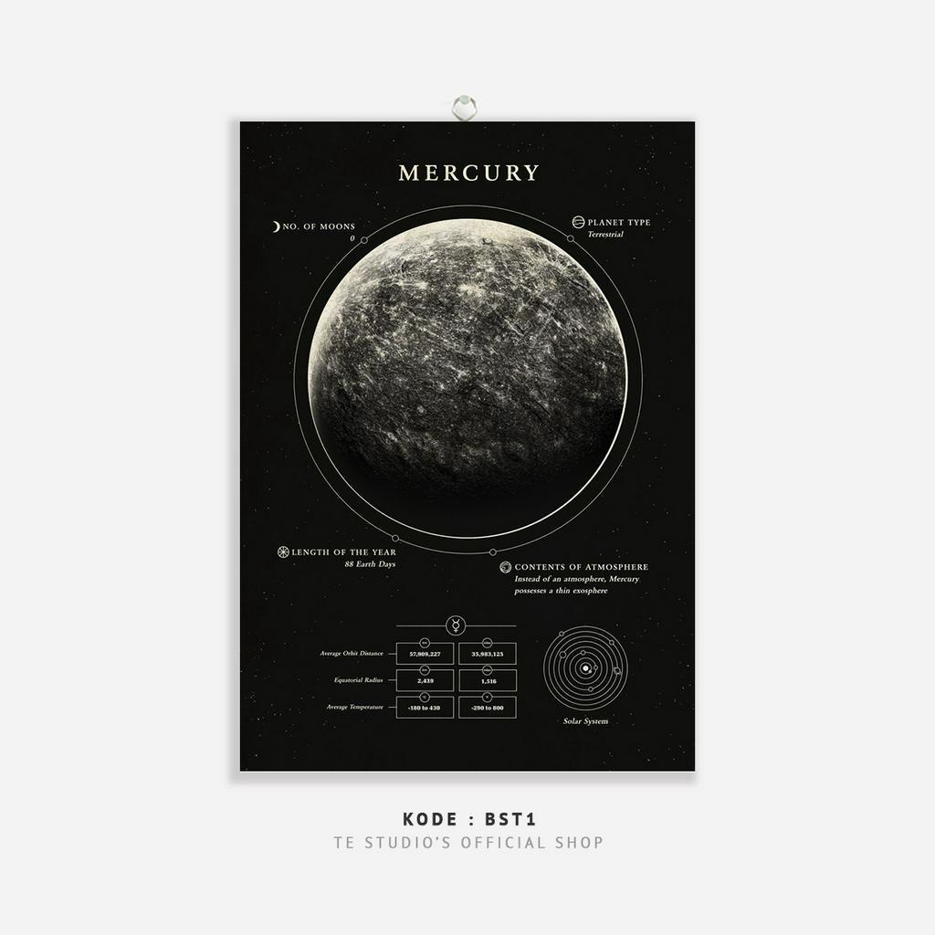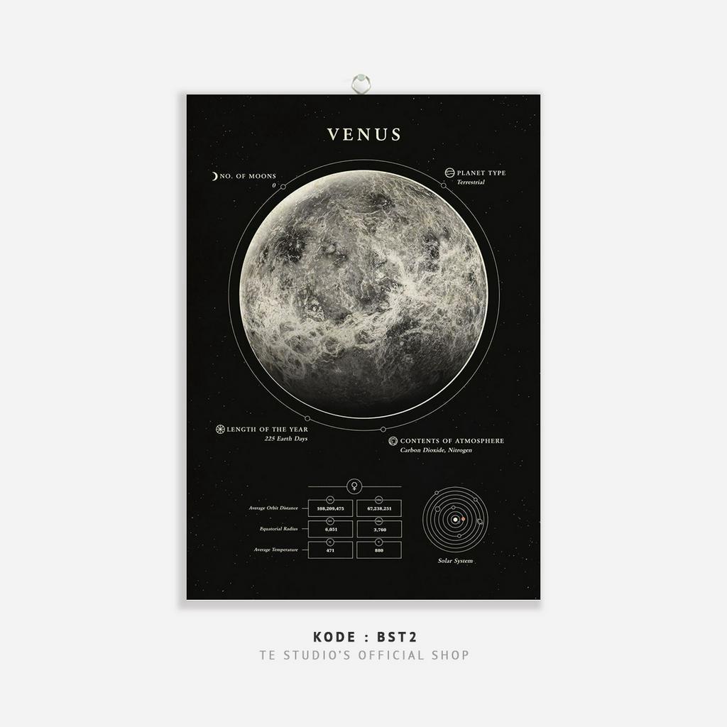 Poster Edukasi Planet Hiasan Dinding Solar System Deep Black Wall Decor Bulan Bumi Sun Planet Tata Surya Alam - BST
