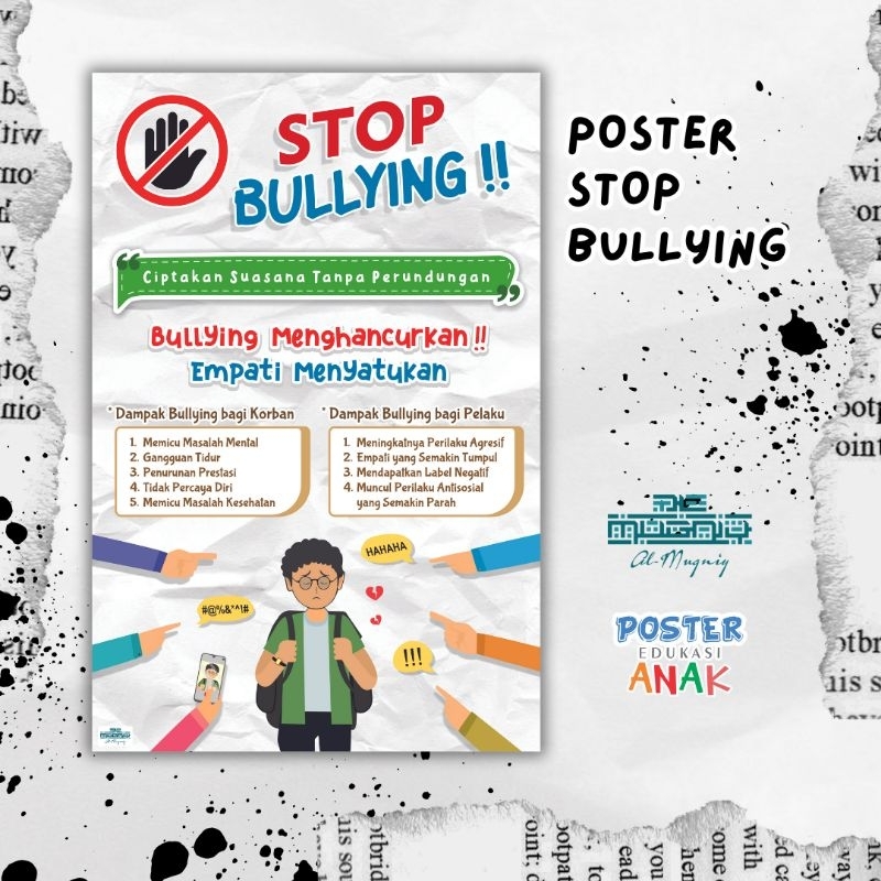 Poster Edukasi Anak - Poster Bullyng - Poster Perundungan - TK, SD, SMP, SMA | Poster Al-Mugniy | Bilingual / 2 Bahasa