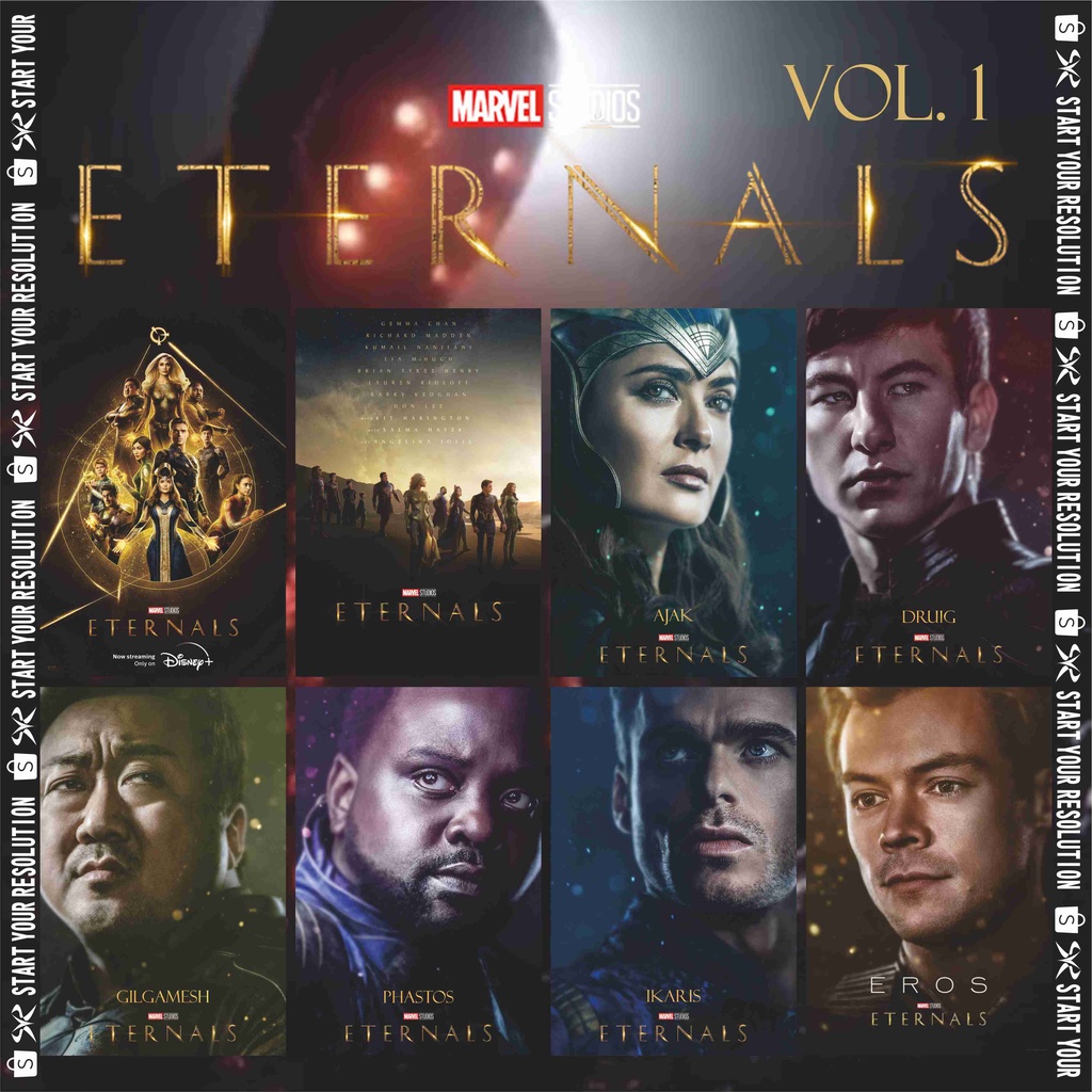 Poster Film Marvel Eternals Vol 1 - Ajak / Druig / Gilgamesh / Phastos / Ikaris / Eros / Harry Styles / Richard Madden Bahan Tebal Finishing Doff - PS