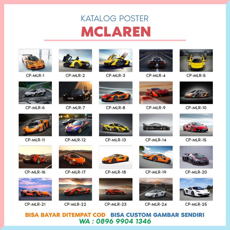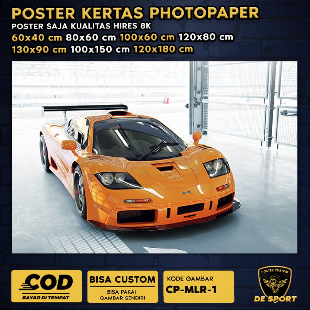 Poster Foto Jumbo Mobil McLaren P1 GTR Mc Laren F1 570S Spider 720S 675LT MP4-12C Senna Custom Gambar Lain Super Car Hyper Car Hiasan Dinding Sporty Bengkel Garasi Gaul Men DESPORT SIMPANG DARMO STORE CP-MLR-1