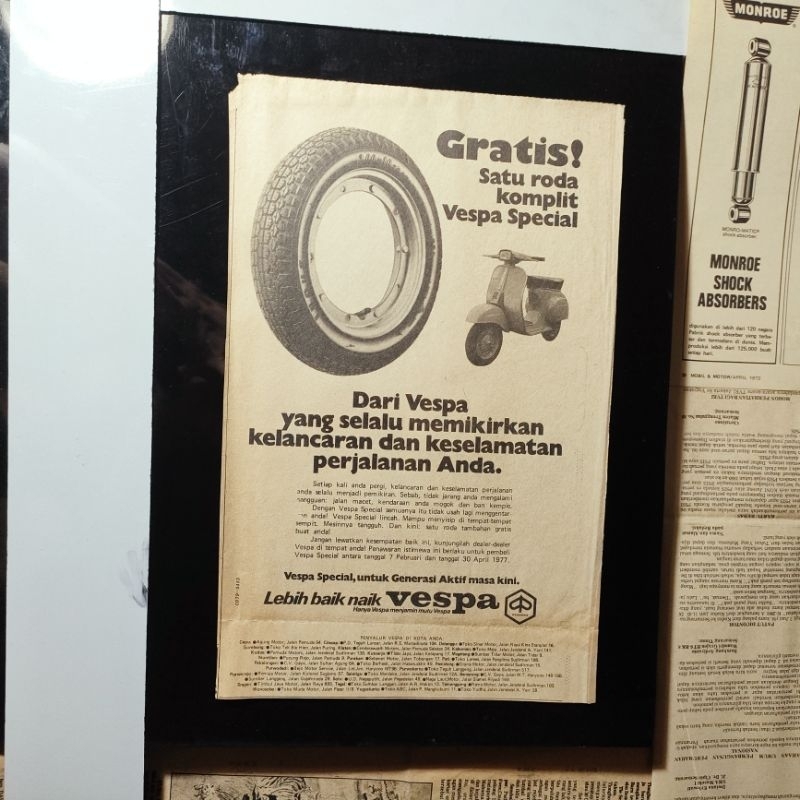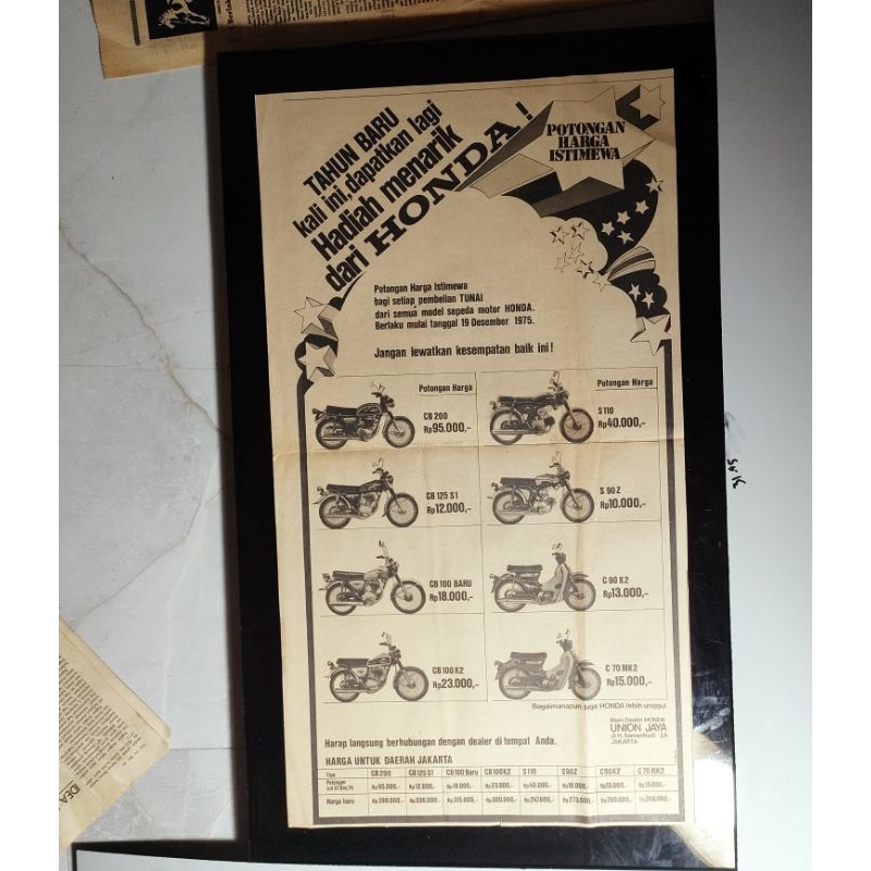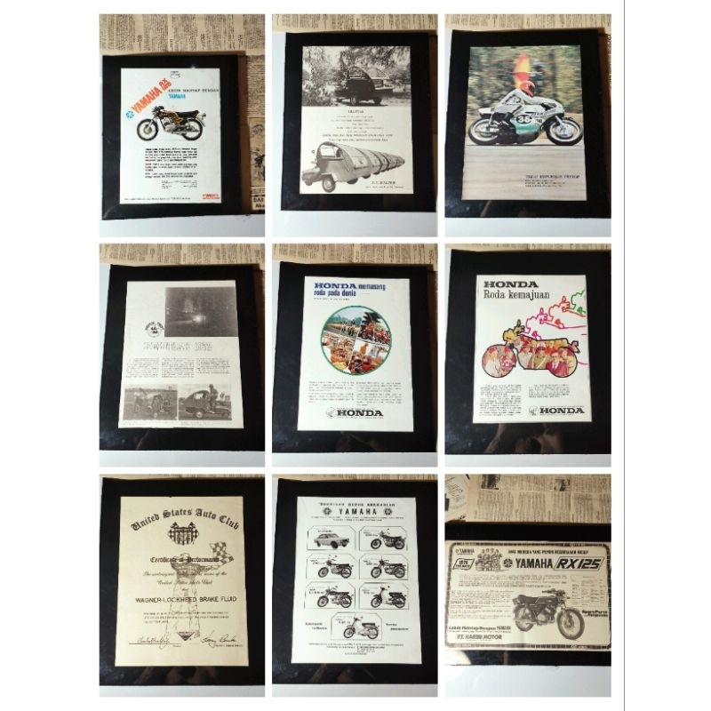 Poster Iklan Motor Jadul Tahun 1970-an Original Helicak-Vespa PTS Special PX Honda CB100-CB125-CB200-St70-c70-Suzuki GP100-yamaha RX125-Kawasaki100-Suzuki GT Dekorasi Vintage Iklan Motor Klasik Poster Old Paper Vintage Brosur Motor Tua Retro wall