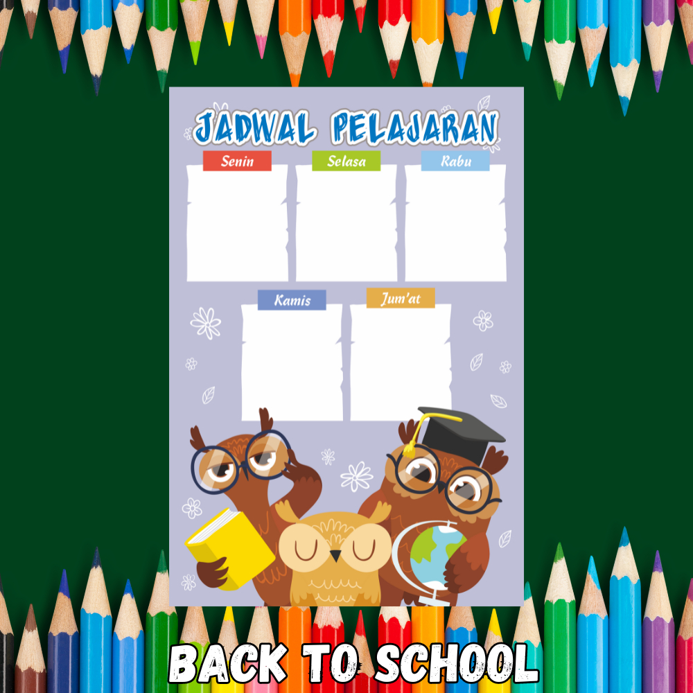 Poster Jadwal Pelajaran Motif Cartoon Poster Mata Pelajaran Wipe and Clean Jadwal Mata Pelajaran Keren 1