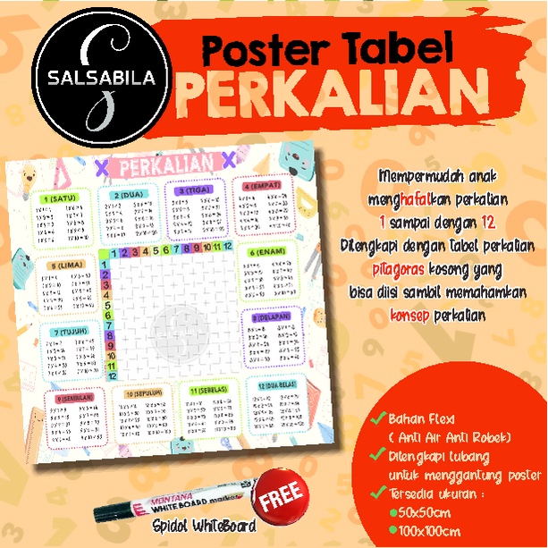 Poster Jumbo Tabel Perkalian Pitagoras Anti air anti robek / Mainan edukasi / Poster Edukasi Gratis Spidol / Media Pembelajaran SD / Poster Belajar Phytagoras