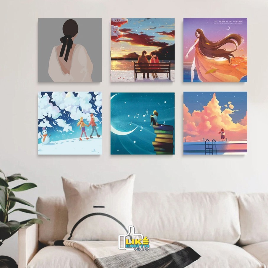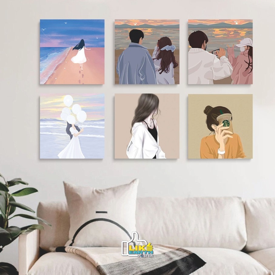 Poster Kayu 15X15 Lukis bingkai Lukisan wanita cantik Lukisan Dekorasi Rumah painting desain simple