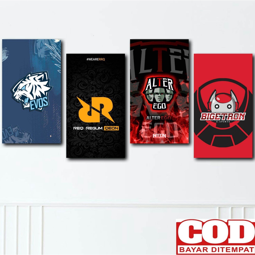 Poster Kayu Logo Team Squad Evos Rrq Onic Alter Ego Bigetron Ml ff Pubg Wall decor Dekorasi Kamar Gaming Gamers Keren Murah
