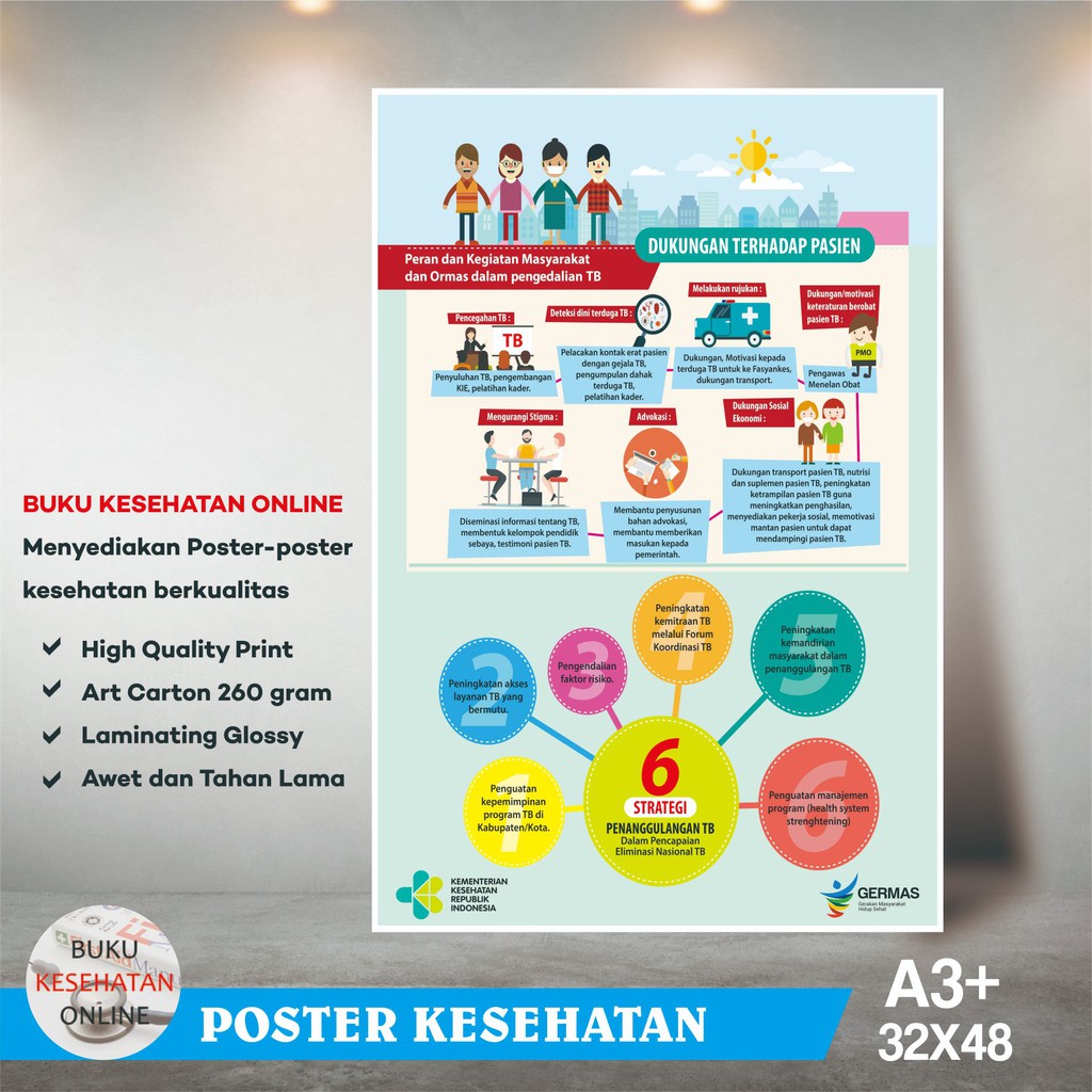 Poster Kesehatan - DUKUNGAN TERHADAP PASIEN TERJANGKIT TB - LAMINATING GLOSSY