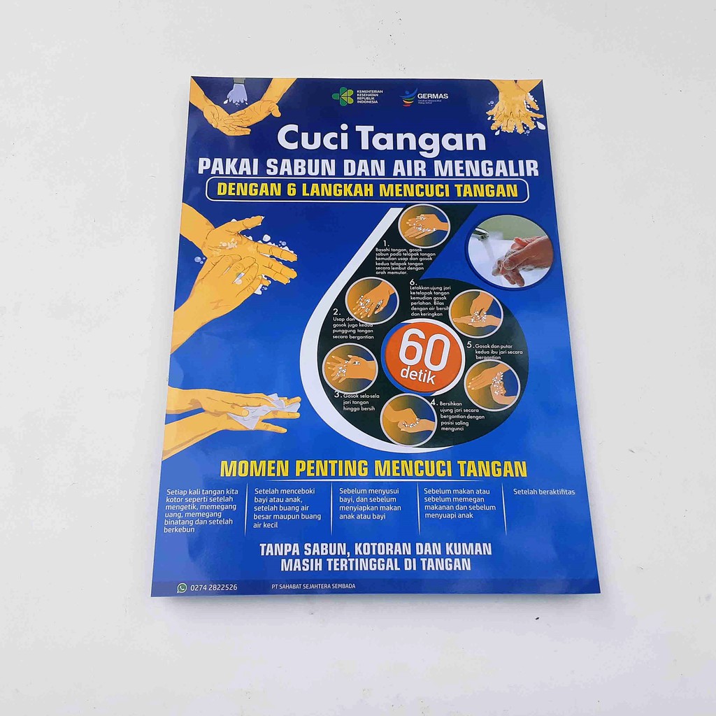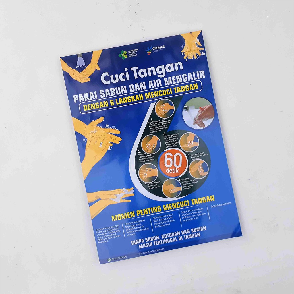 Poster Kesehatan Ukuran 51.5 cm x 35 cm : Poster Cara Cuci Tangan 6 Langkah versi Kemenkes.