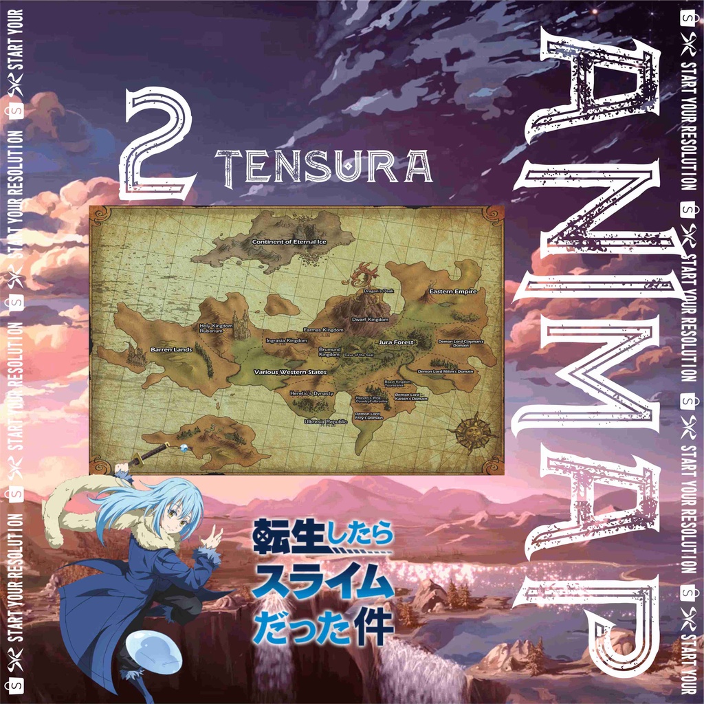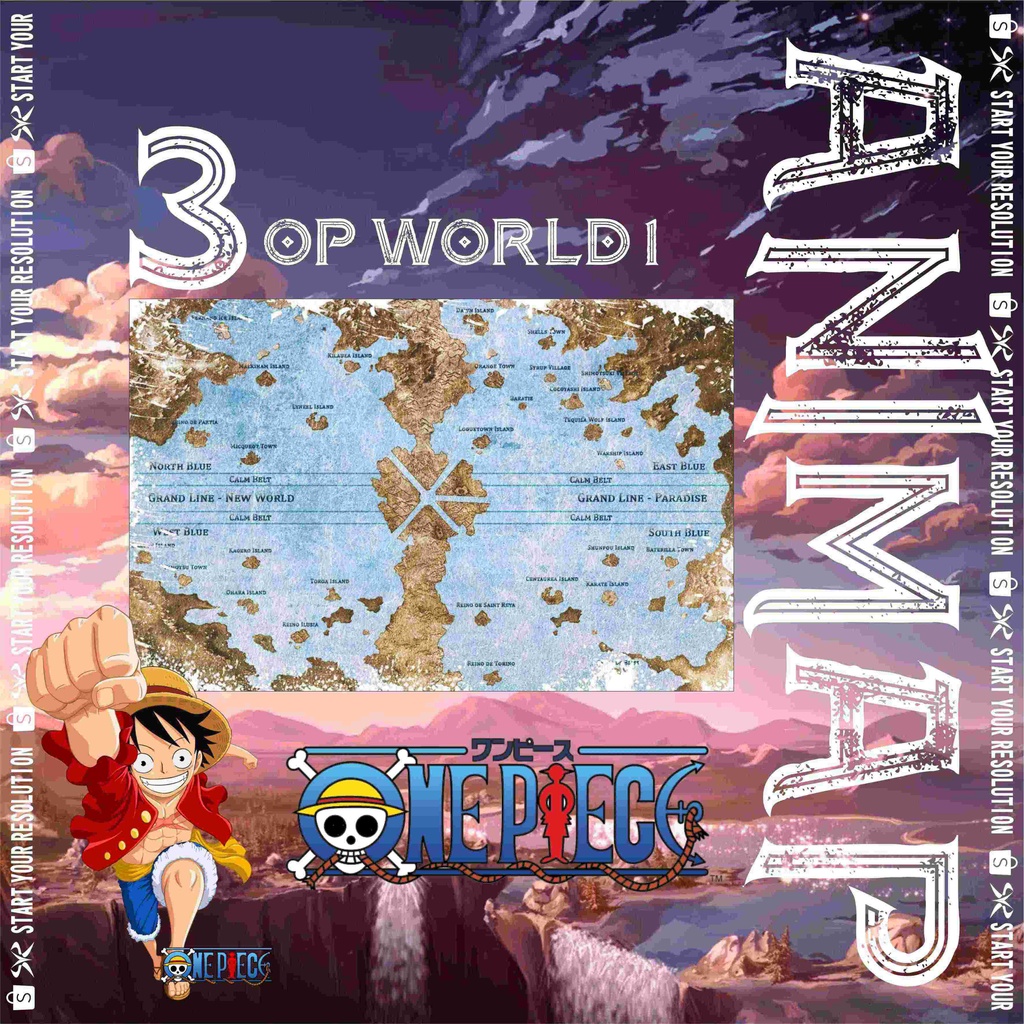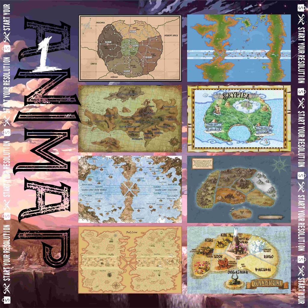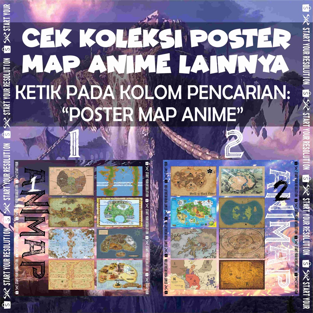 Poster Map Anime Seri 1 - Peta Anime Fullmetal Alchemist / Tensei Shitara Slime Datta Ken / Tensura / One Piece / Skypiea / Wano Bahan Tebal Finishing Doff - PS