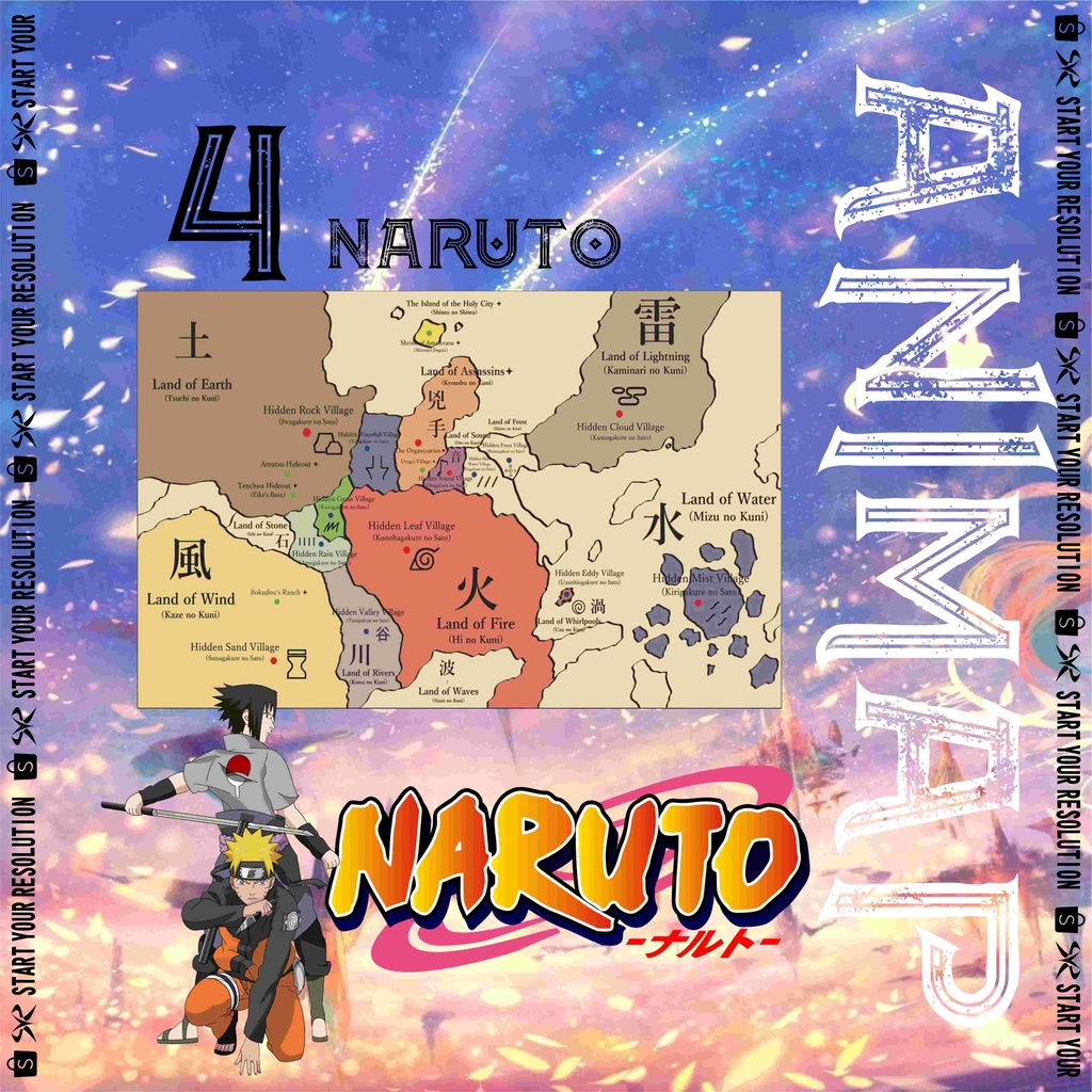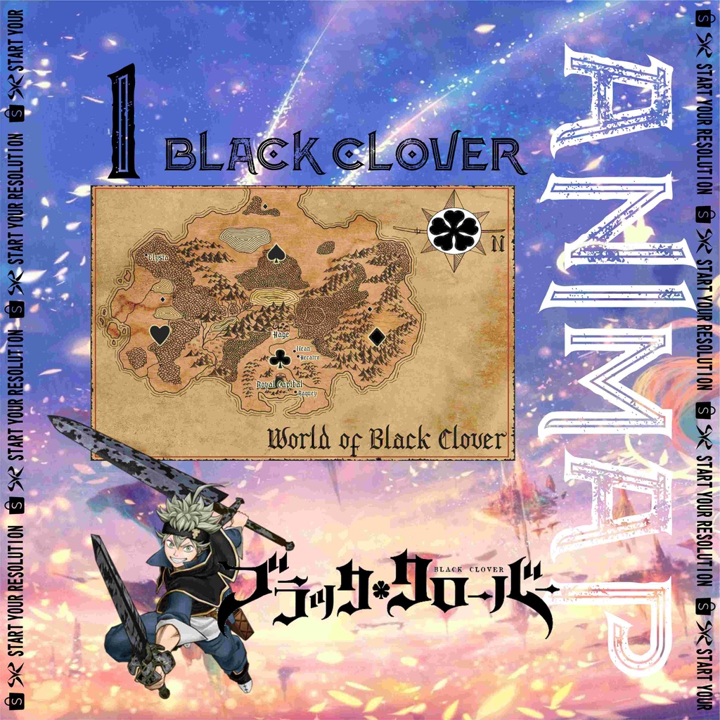 Poster Map Anime Seri 2 - Peta Anime Black Clover / Dragon Ball / Hunter X Hunter / Fairy Tail / Naruto / Isekai / Tate No Yuusha shield / Kenja no Mago/ Konosuba / Attack On Titan / Shingeki no Kyojin Bahan Tebal Finishing Doff - PS