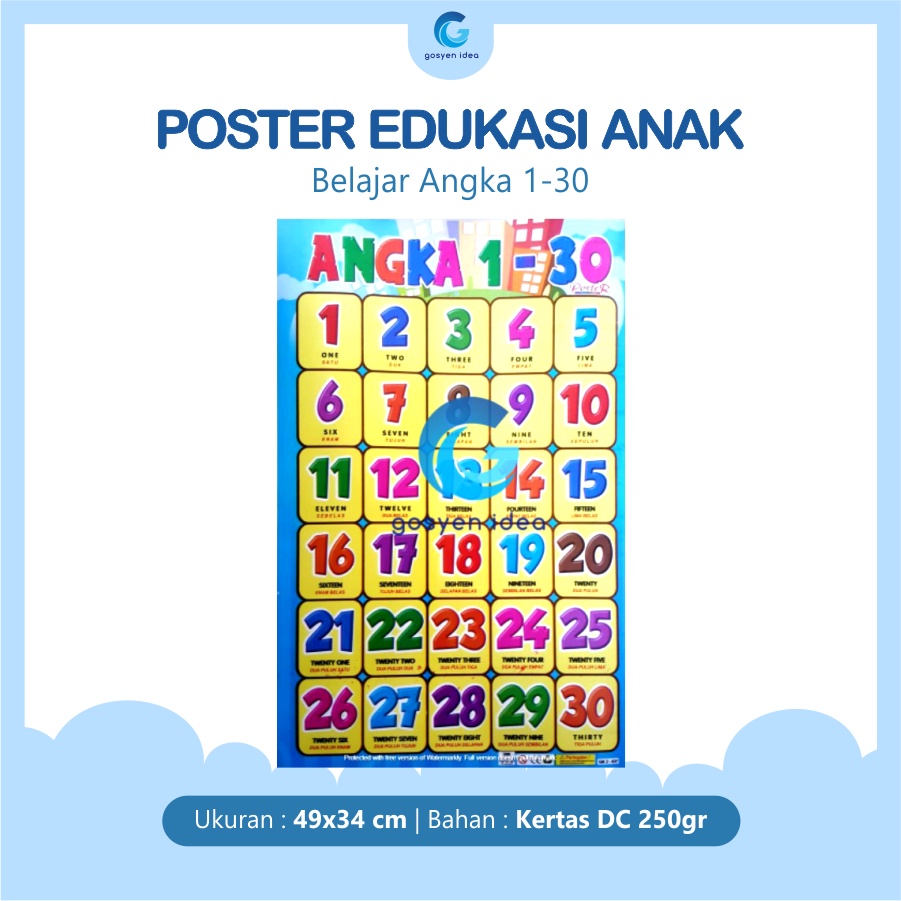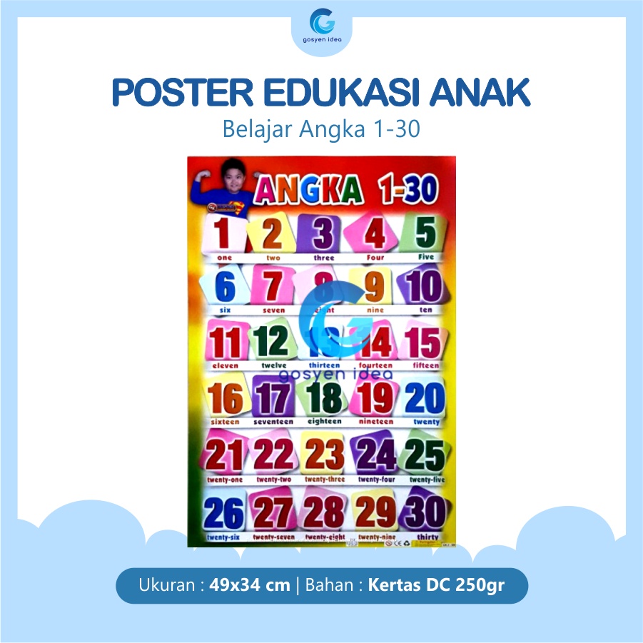 Poster Dinding Pendidikan Edukasi Anak Belajar Gambar Angka 1-30