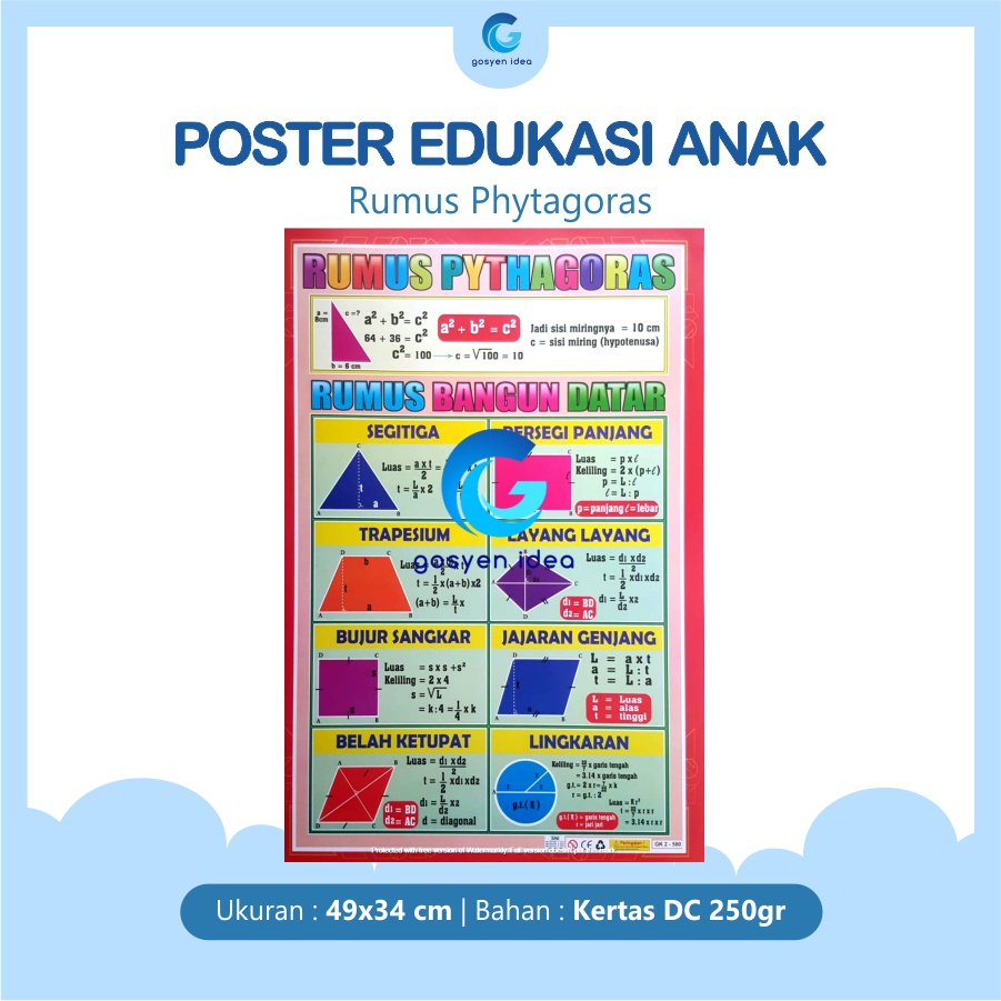 Poster Pendidikan Anak Belajar Matematika Rumus Phytagoras