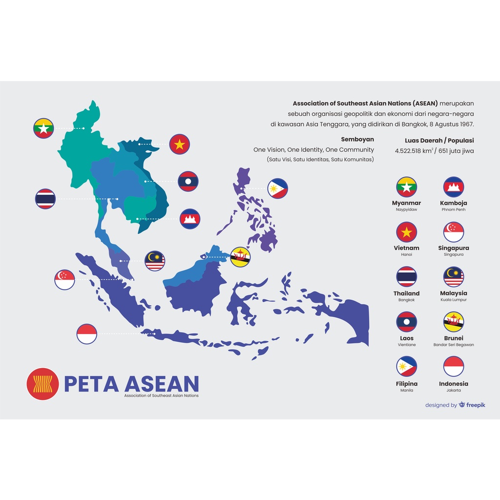 Poster Peta ASEAN | Map-02 | Poster Animasi - Poster Custom - Poster Edukasi