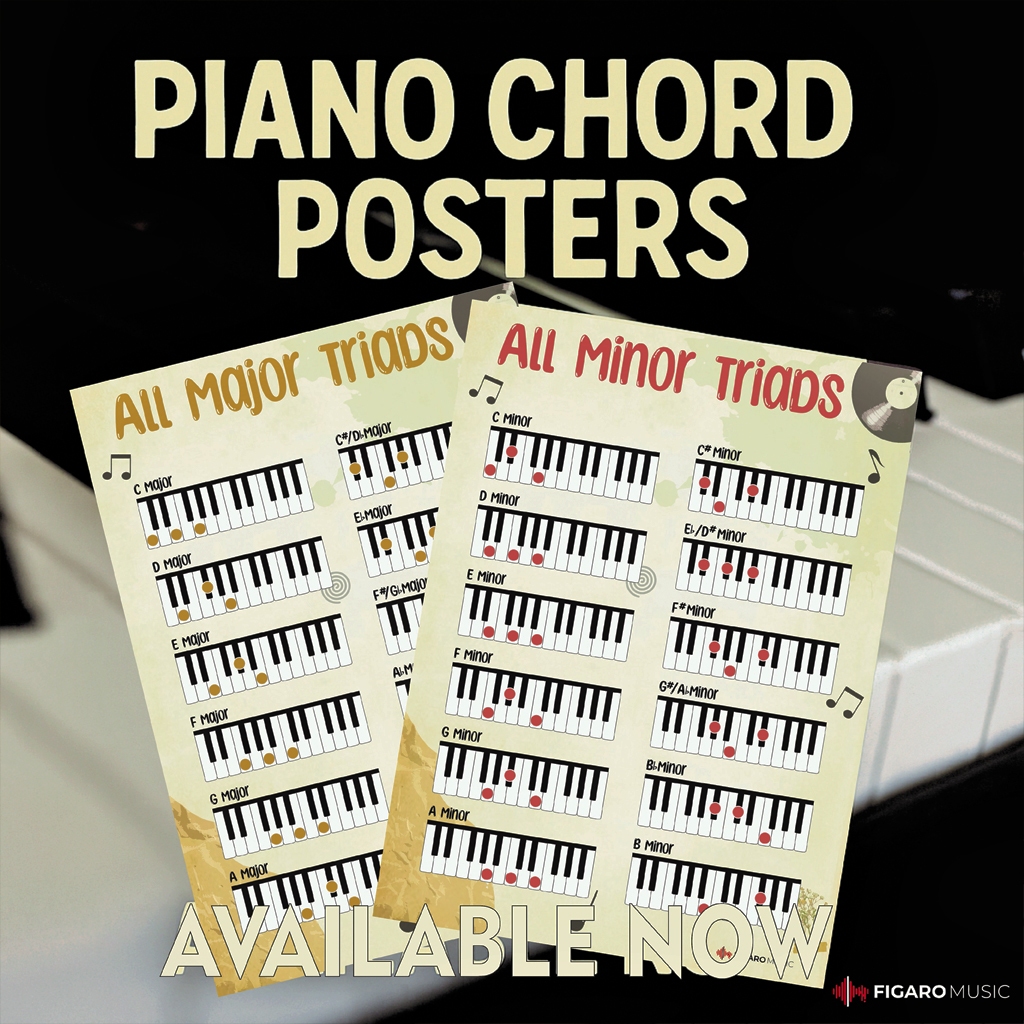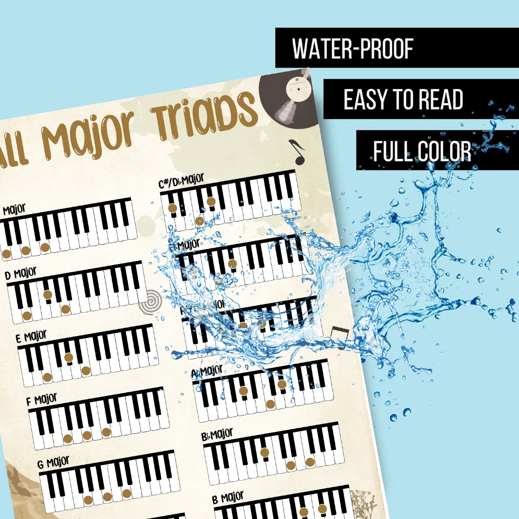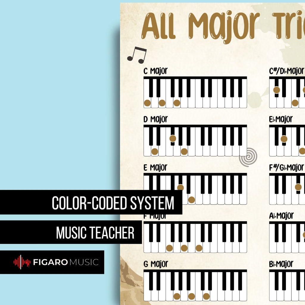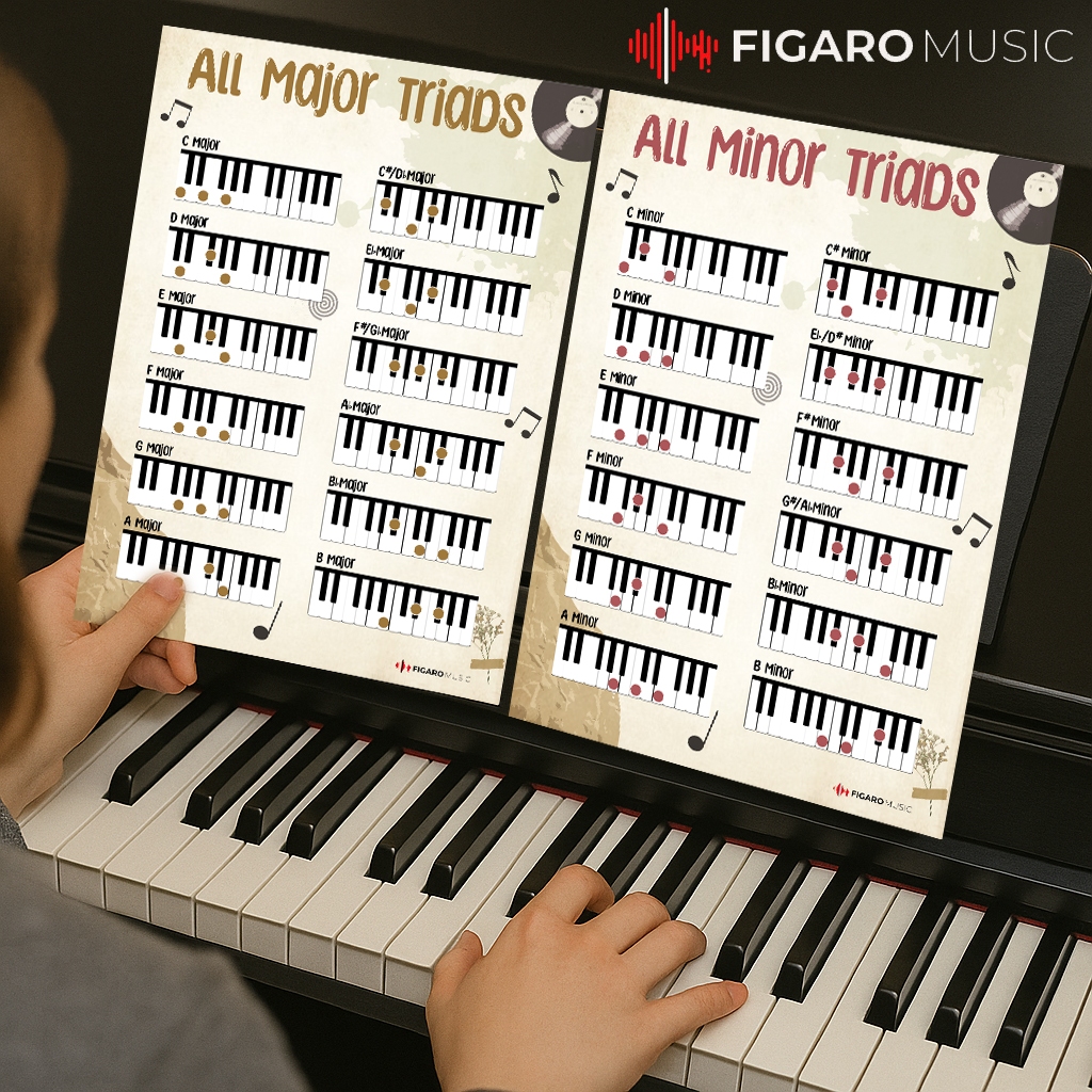 Poster Piano All Major Minor Triads Chart - Reference for Beginners Adult or Kid