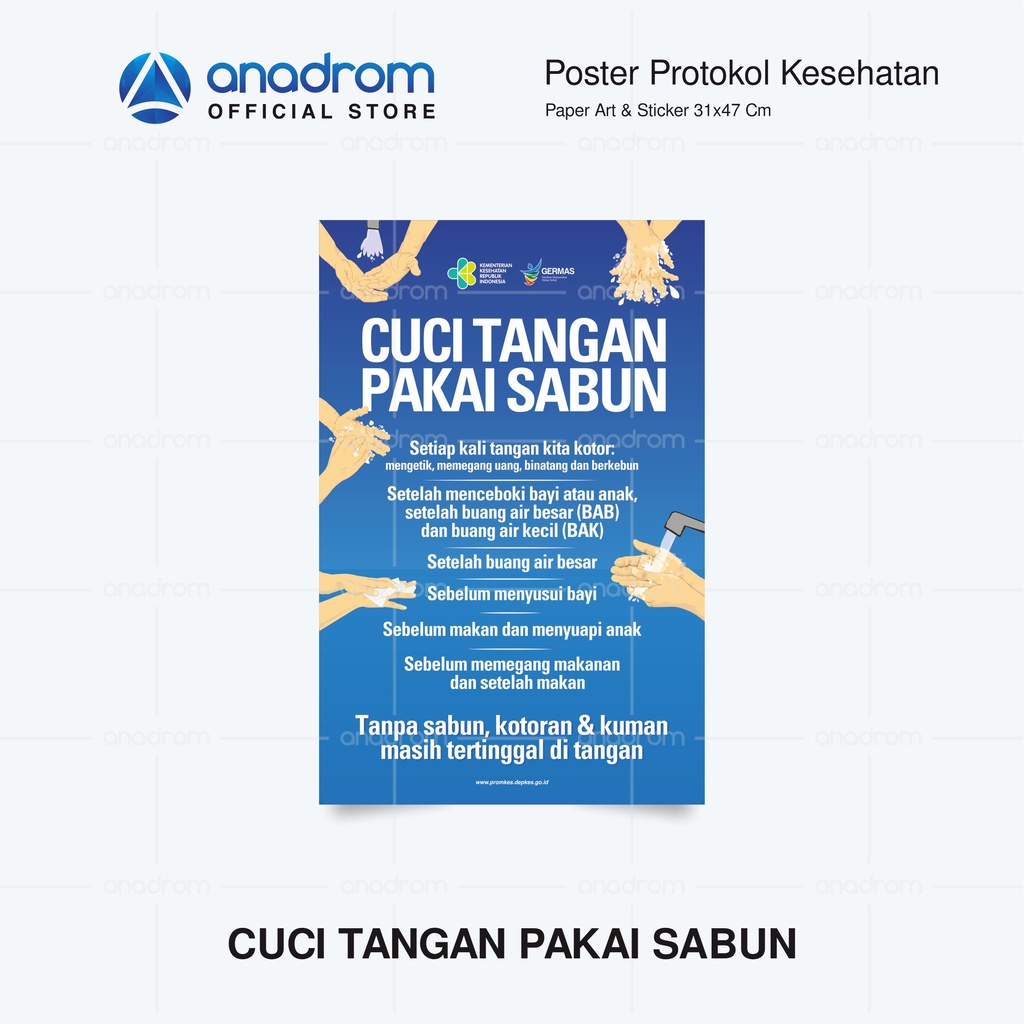 Poster Protokol Kesehatan I poster cara mencuci tangan | Poster etika batuk dan bersin I Poster Edukasi Memakai Masker |Poster Art Carton 260 gr & Stiker I Anadrom 3171