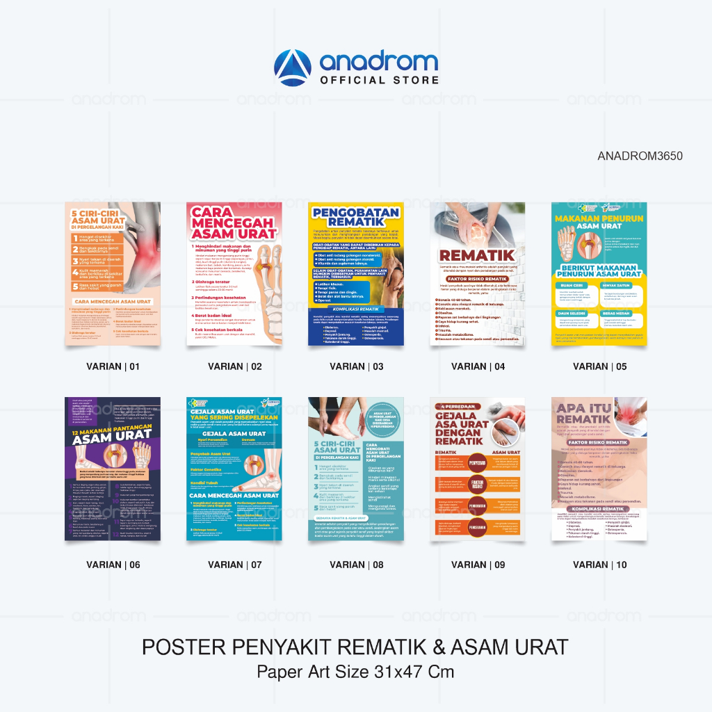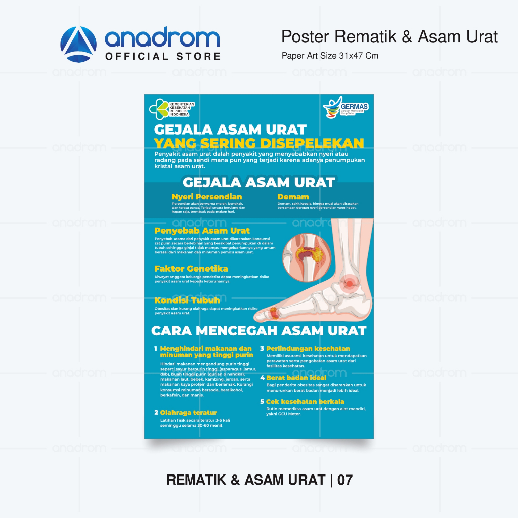 Poster Seputar Penyakit Rematik & Asam Urat | Poster Promosi Edukasi Kesehatan | Anadrom 3650