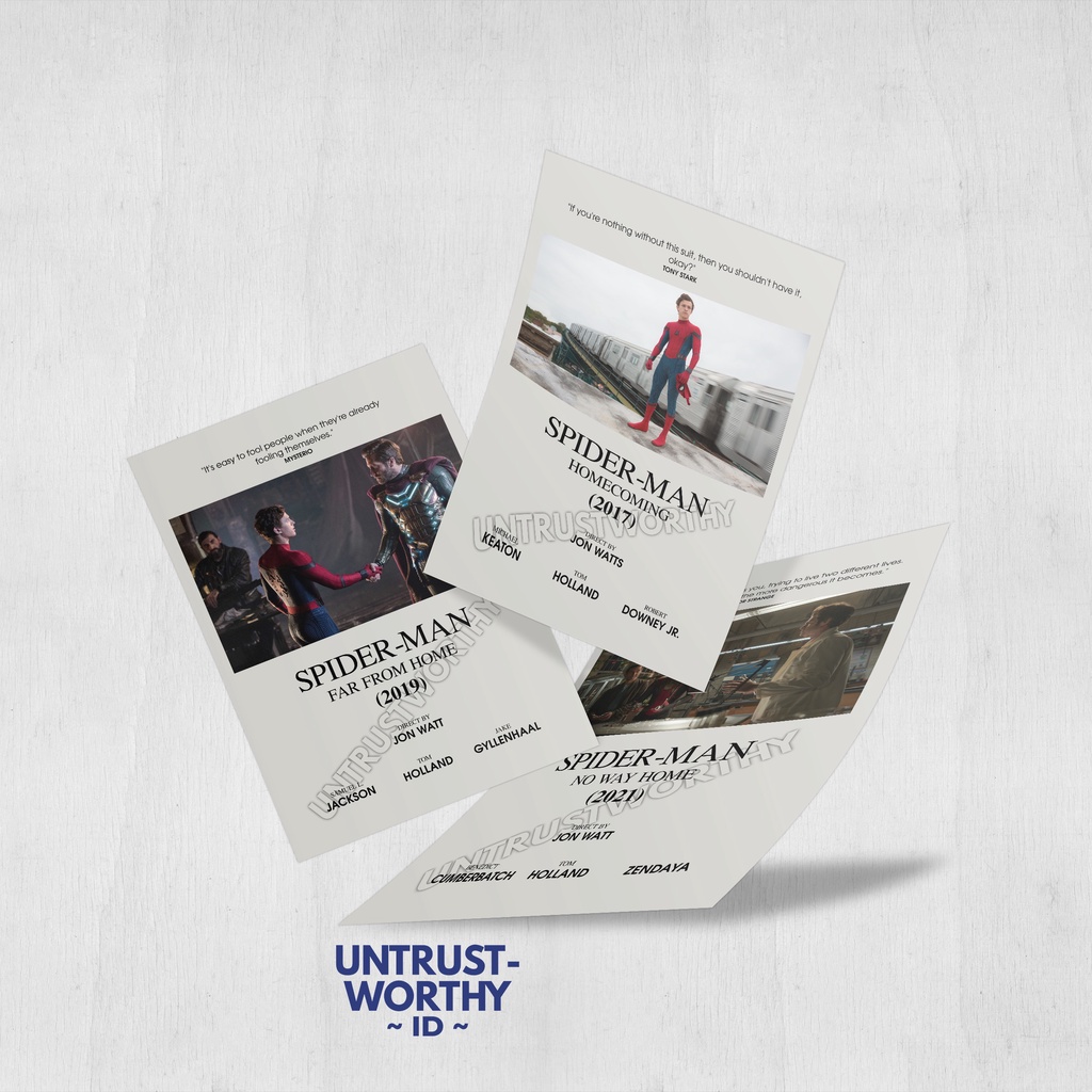 Poster Spider-Man Marvel Cinematic Universe (MCU) Trilogy Film Ukuran A5 (3pcs)