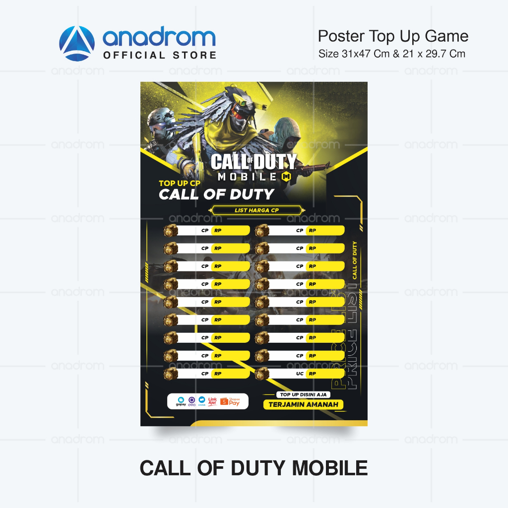 Poster & Sticker Top Up Games | Poster Daftar Harga Top Up games | Anadrom 3435