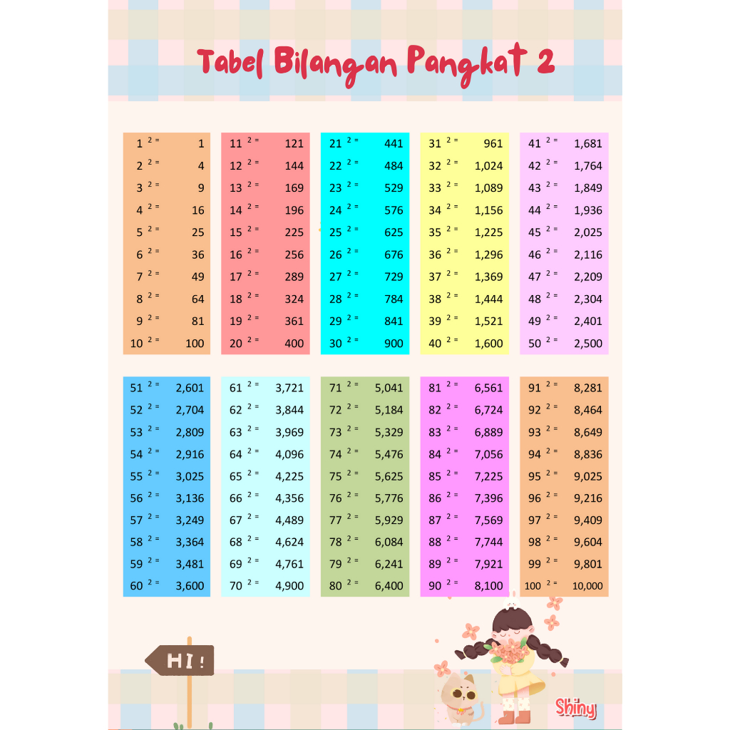 Poster Tabel bilangan akar dan pangkat tiga dan pangkat 2 untuk anak sd