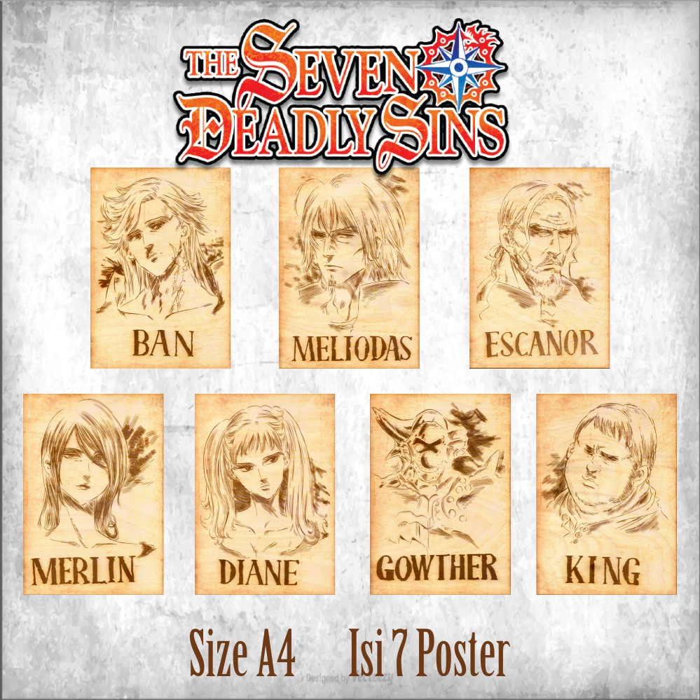 Poster Wanted Nanatsu No Taizai Seven Deadly Sins 1 set (7pcs) uk A4