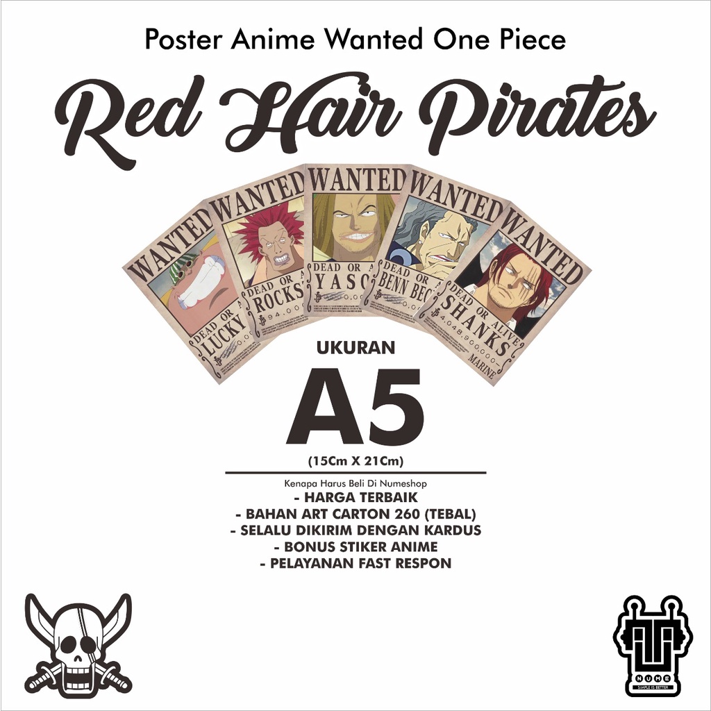 Poster Wanted Poster Bounty One Piece Red Hair Pirates Akagami Shanks 1 Set Ukuran A5