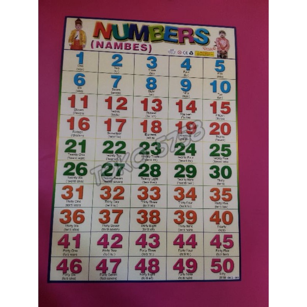 Poster angka 1 sampai 50 untuk belajar anak agar anak menjadi pintar dan cerdas dalam matematika