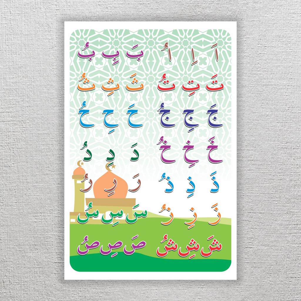 Poster belajar anak TK / PAUD / media belajar membaca Huruf hijaiyah 2 POSTER / media mainan edukasi