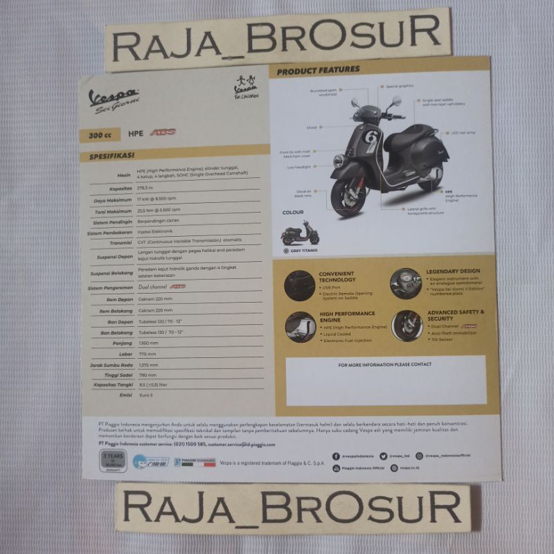 Poster brosur flyer Piaggio Vespa GTV Sei Giorni Grey Titanio