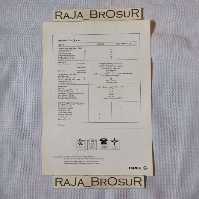 Poster brosur jadul lawas Opel Optima Club
