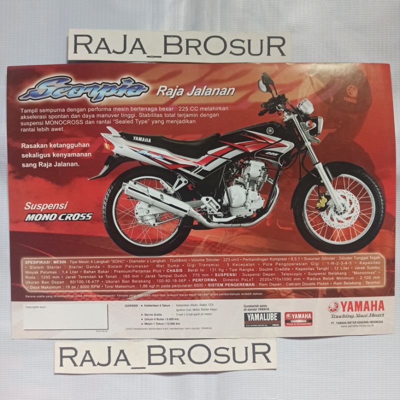 Poster brosur katalog flyer jadul lawas Yamaha Scorpio 225 Steko 2003