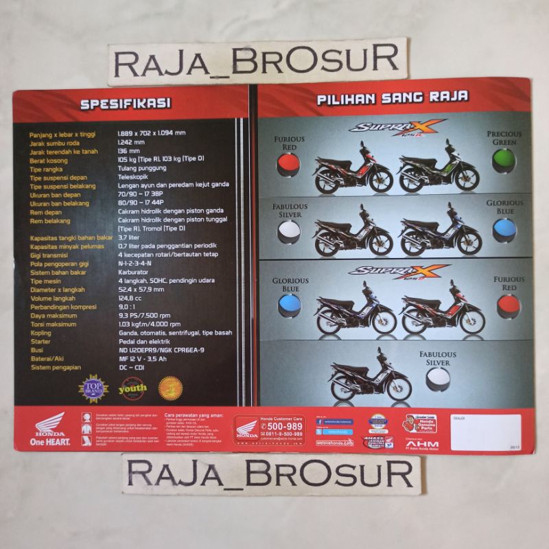 Poster brosur katalog leaflet Honda Supra X 125R/Supra X 125 R Karburator Karbu 2013