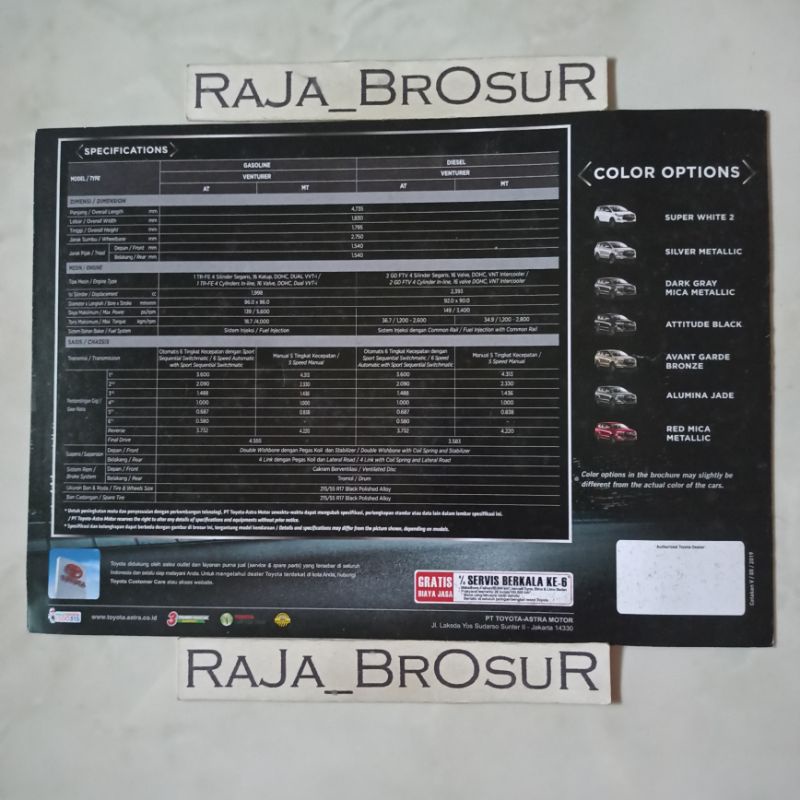 Poster brosur katalog leaflet Toyota Kijang Innova Venturer 2019