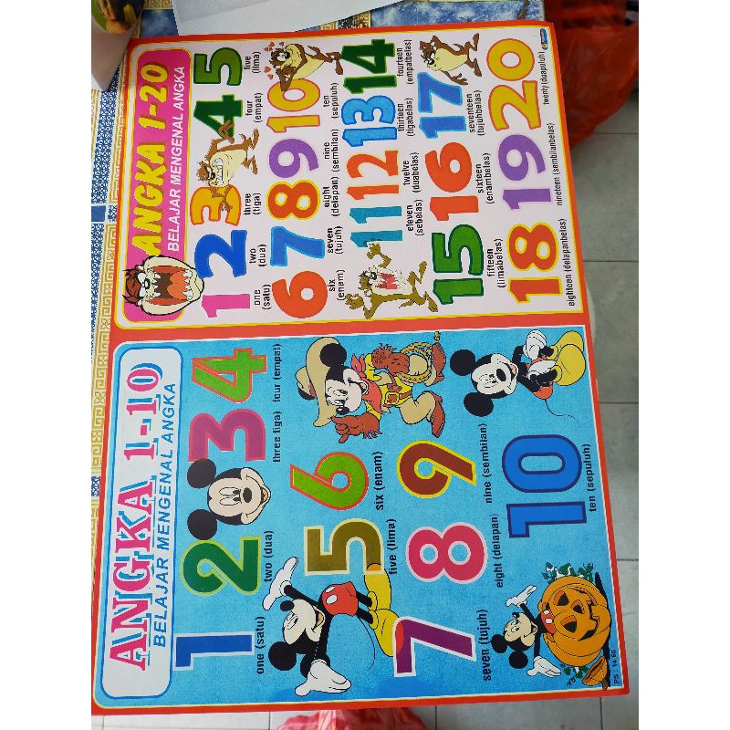 Poster edukasi anak / poster anak lembaran angka number angka shaper colour