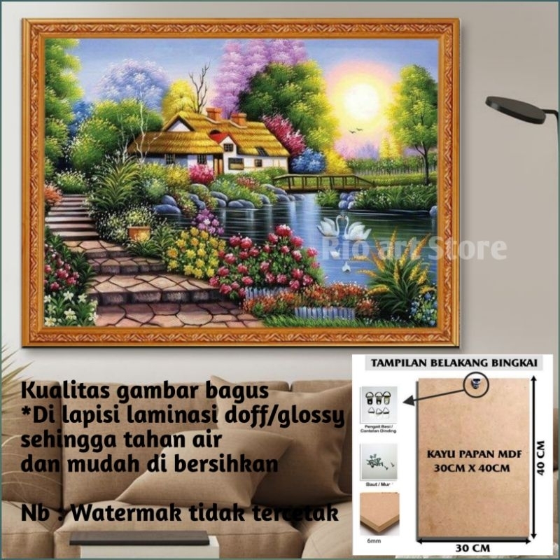 Poster lukisan pemandangan pedesaan hiasan dinding atau walldekor bahan papan kayu mdf