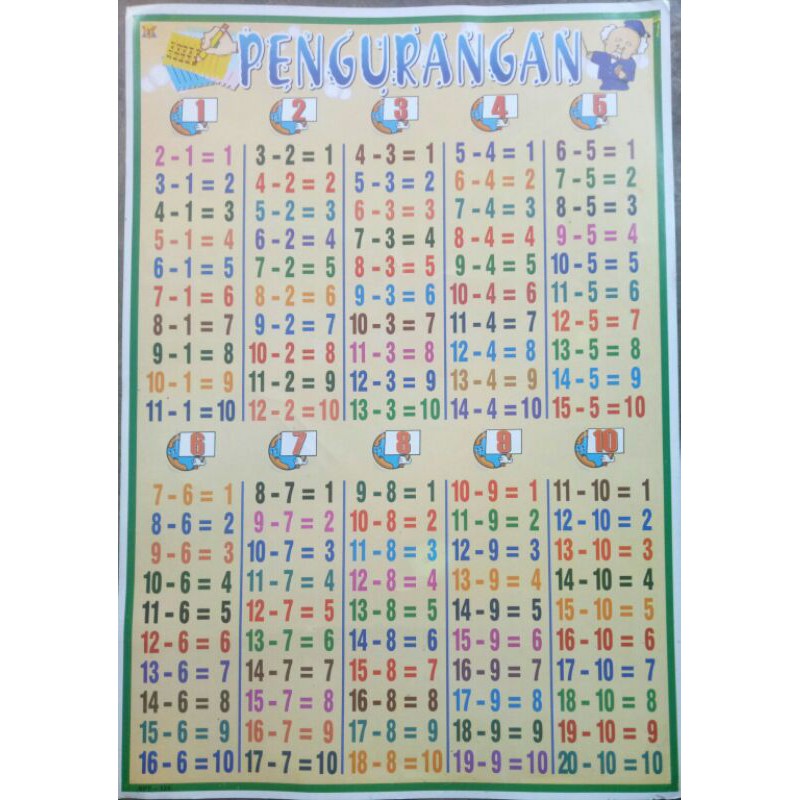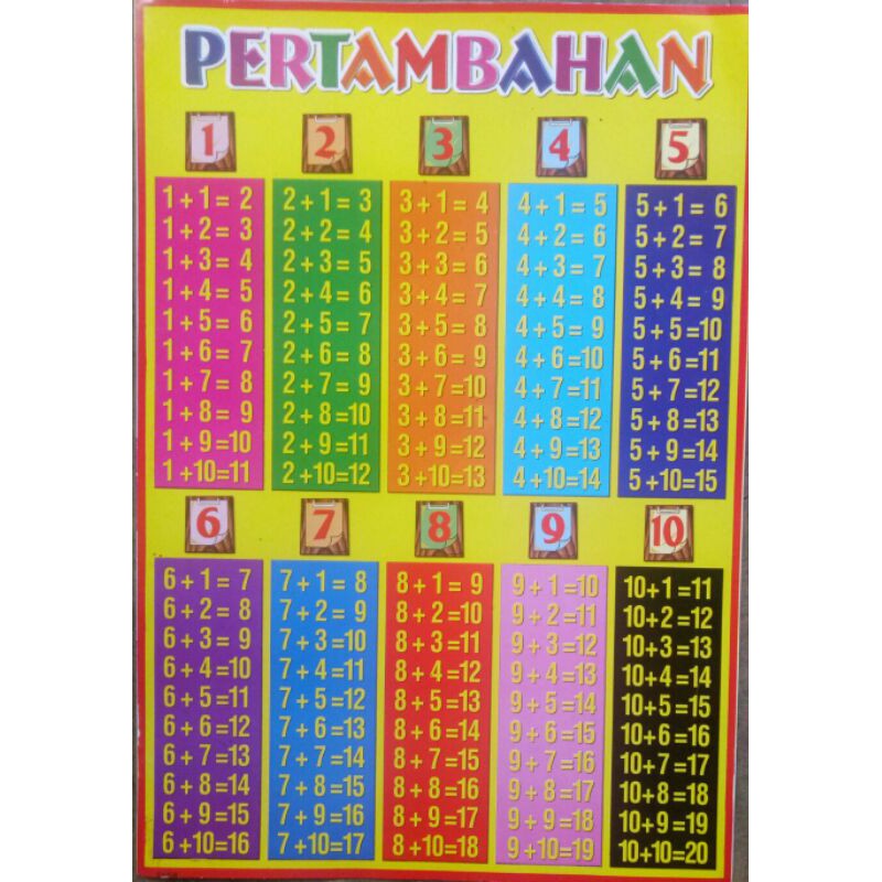 Poster pertambahan / poster perkalian / poster pembagian / poster pengurangan / poster berhitung