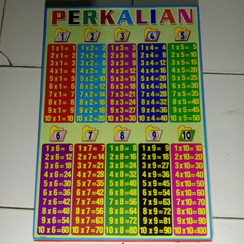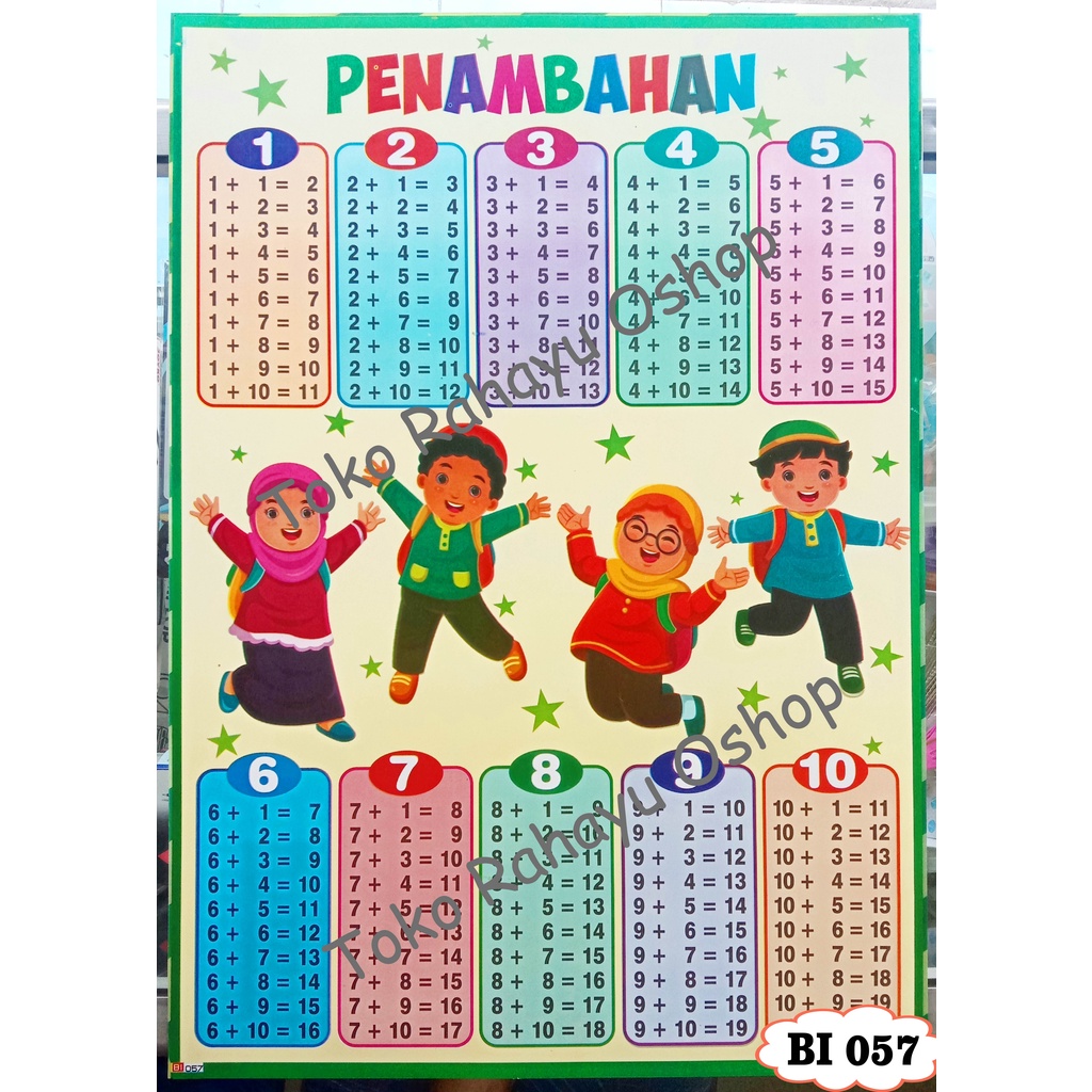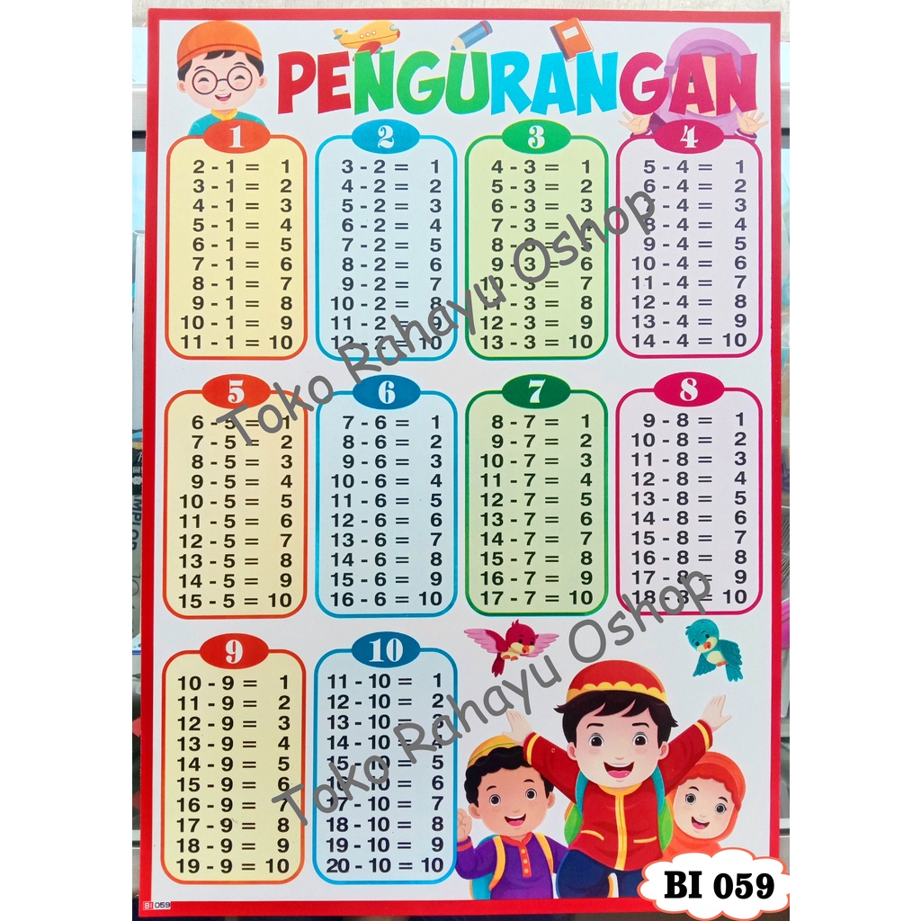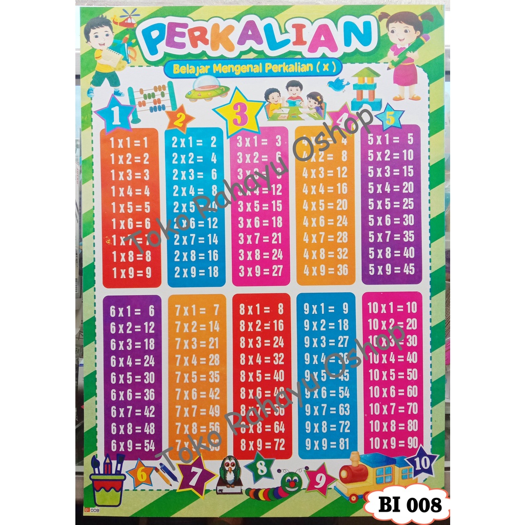 Poster tabel perkalian pembagian pertambahan pengurangan