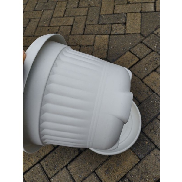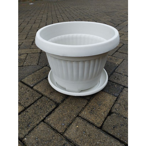 Pot Bunga BESAR Phylia Alas 526 Putih Diameter 36cm