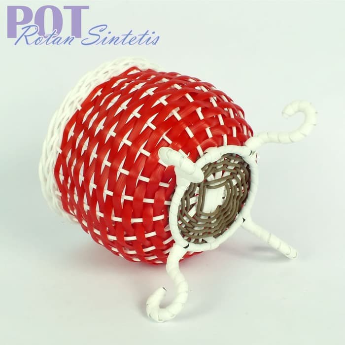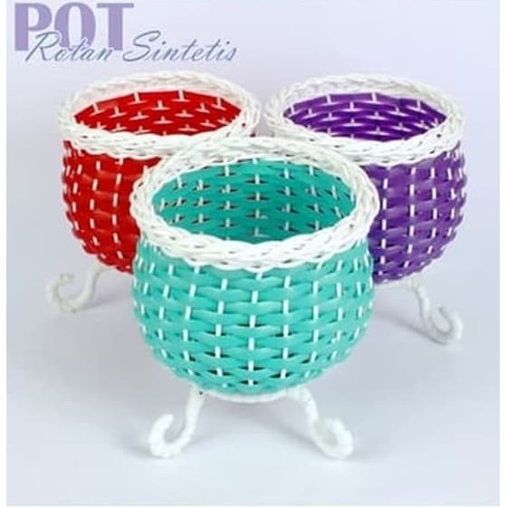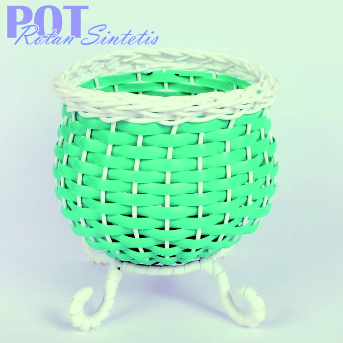 Pot Bunga Bahan Rotan Sintetis Bulat Duduk - Lubang 10 Cm