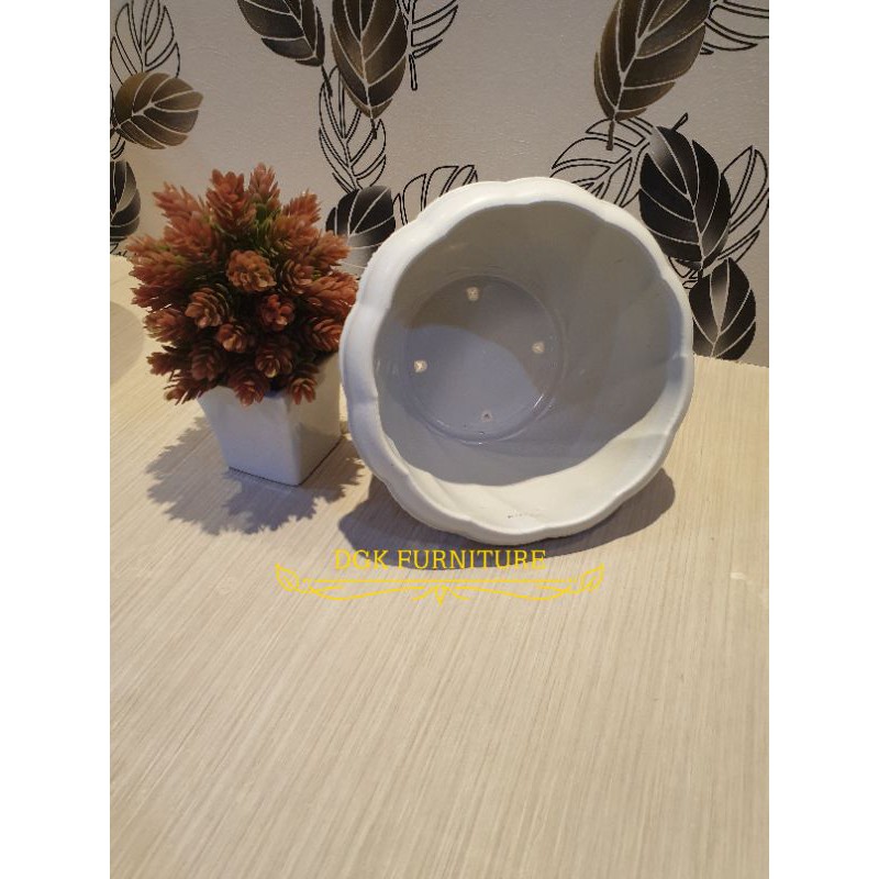 Pot Bunga Bulat Bermotif Putih Diameter 19 cm Plastik