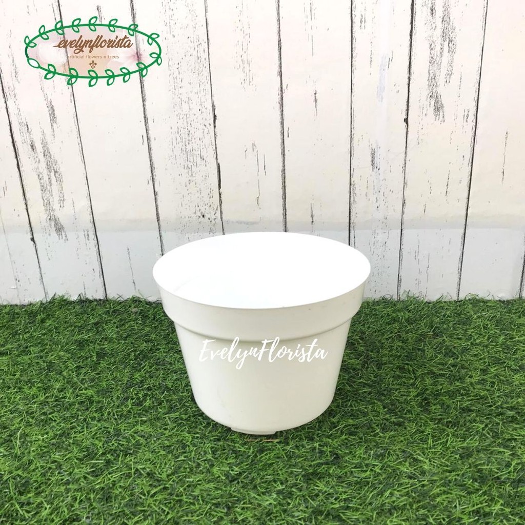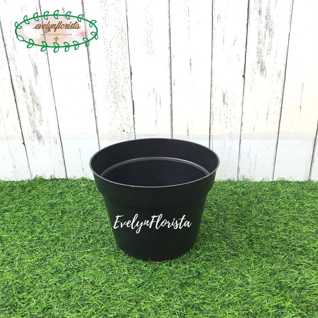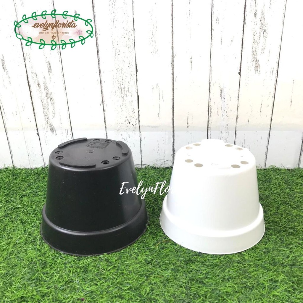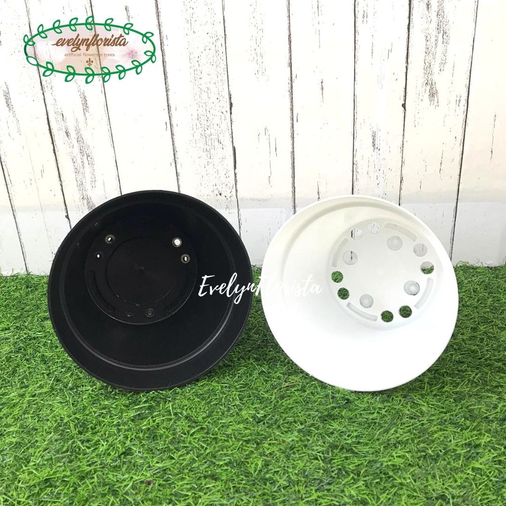 Pot Bunga Bulat Hitam Putih Plastik Bunga Tani SP20 Tanaman Hias Artificial Pohon Hidup
